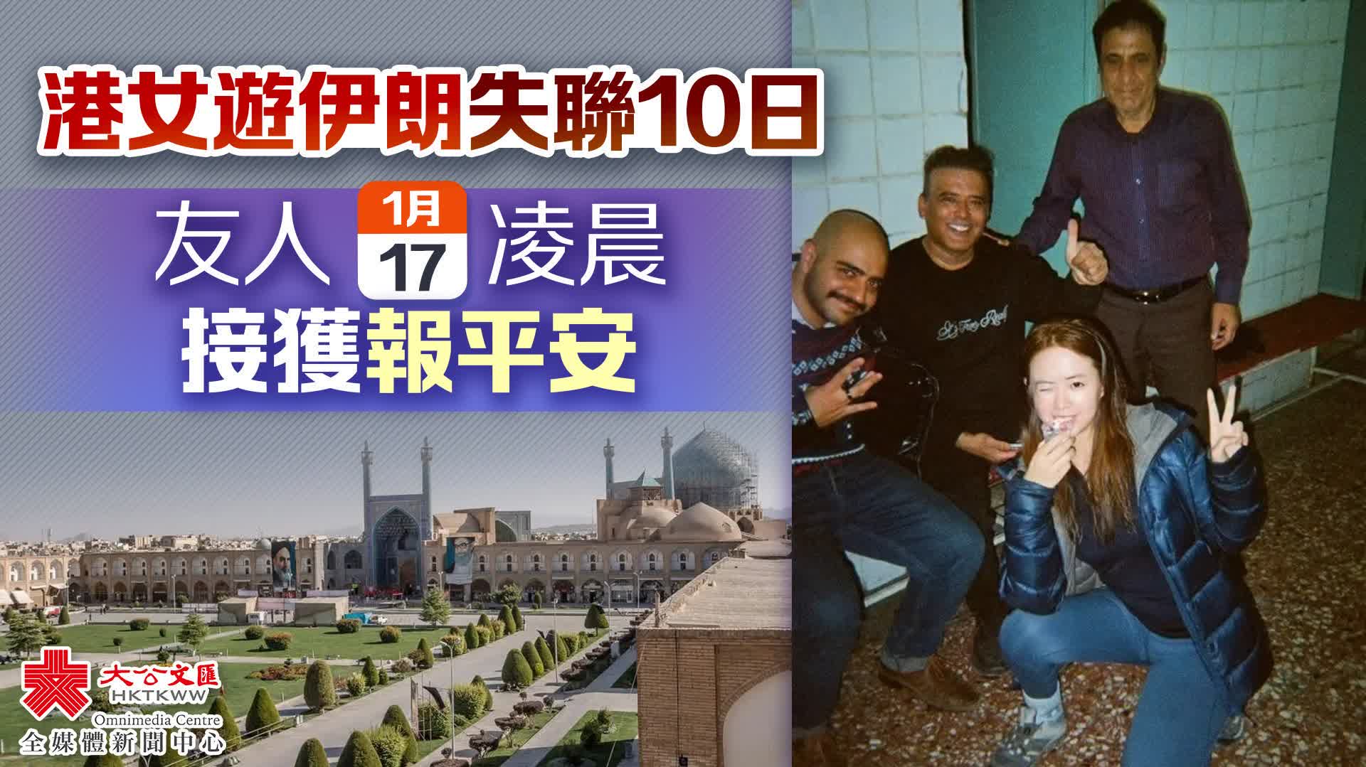 大公文匯全媒體報道,近日,24歲香港女子疑在伊朗旅遊期間失蹤,她的家人向入境處求助。有傳媒報道指,事主最終於今日(17日)香港時間約凌晨12時半,致電友人報平安。