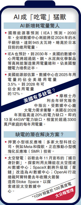 美國高盛集團去年11月發布最新研究報告指出,中國大力推進電力方面的基礎建設,將使其在AI數據中心方面,比美國更具優勢。相比之下,美國電力建設不足,有限的備用電力容量將制約數據中心的發展,拖慢美國AI的發展。