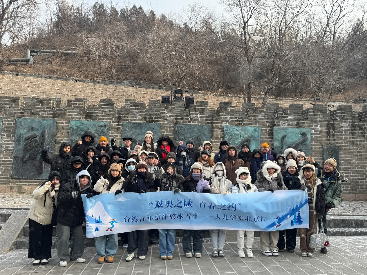 1月15日至20日,台灣大九學堂青年交流團來到北京,參加「雙奧之城 青春之約」台灣青年京津冀冰雪季活動,這也是大九學堂2026年到大陸交流的首團。團組由馬英九基金會執行長王光慈帶領,聚集了來自台灣大學、台灣清華大學、政治大學、世新大學、中山大學等台灣高校近40名青年學生參加,4名來自北京大學的學生志願者與台灣青年結伴同行,共享雙奧之城獨特魅力,共同感受「兩岸一家親」的濃厚氛圍。