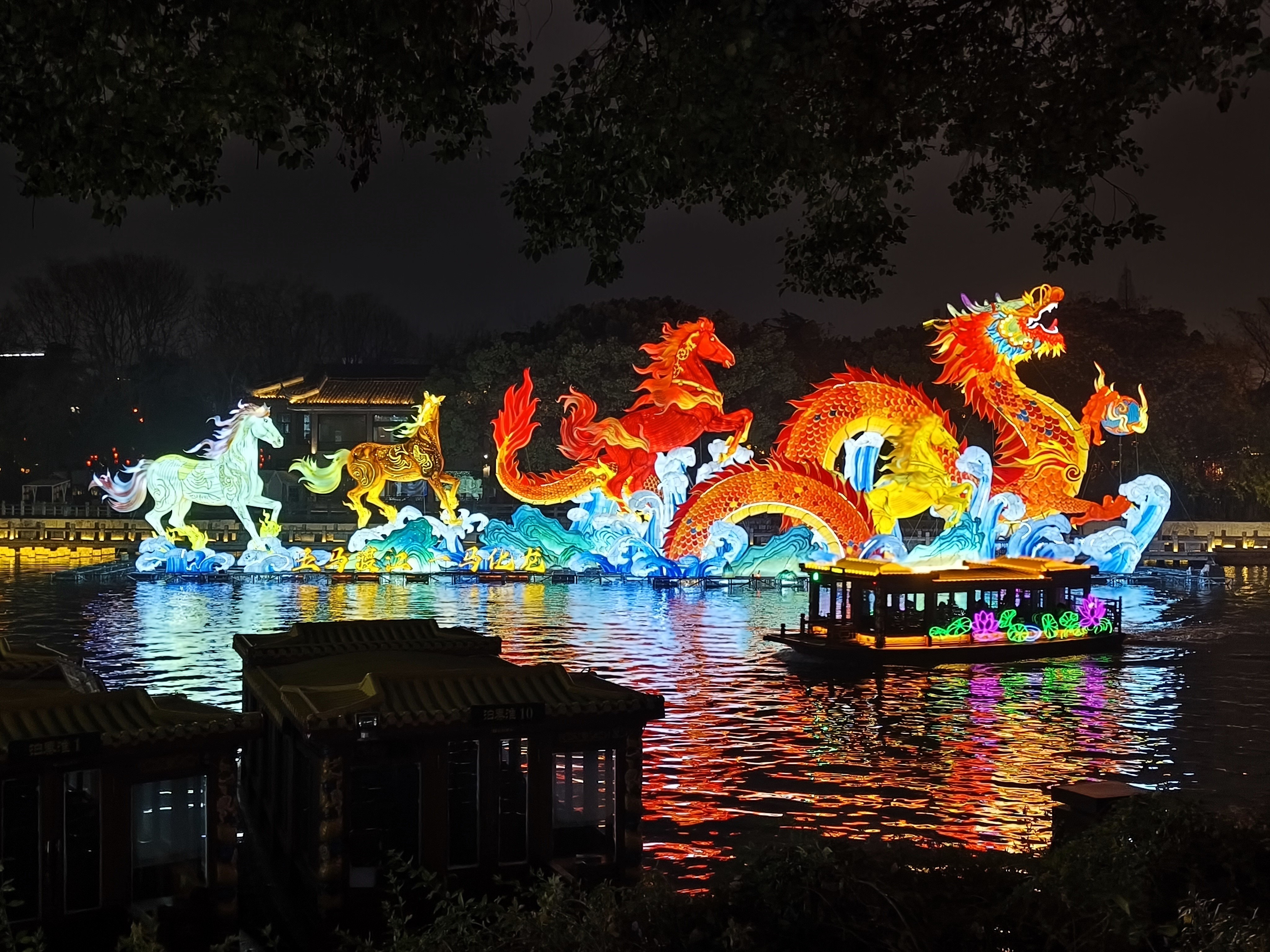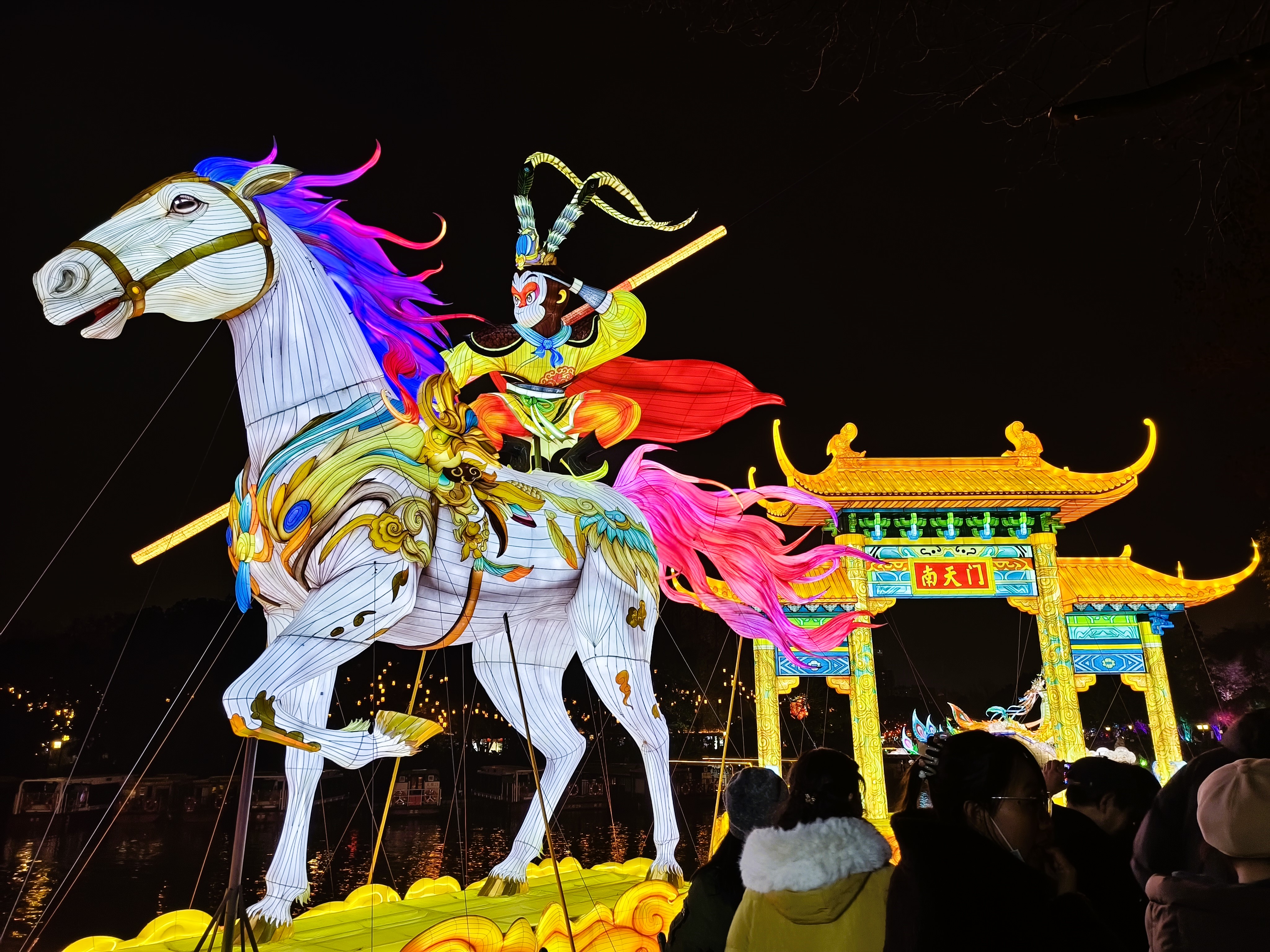 例如,白鷺洲公園燈區將燈彩主題與江南傳統年俗、丙午馬年生肖文化深度融合,特別打造「五馬渡江·一馬化龍」大型故事燈組。該燈組長60米、高20米,以聲光電科技復現司馬氏五王南渡長江、建立東晉王朝的故事,讓市民和遊客在賞燈之餘,也領略到古城南京深厚的歷史底蘊。