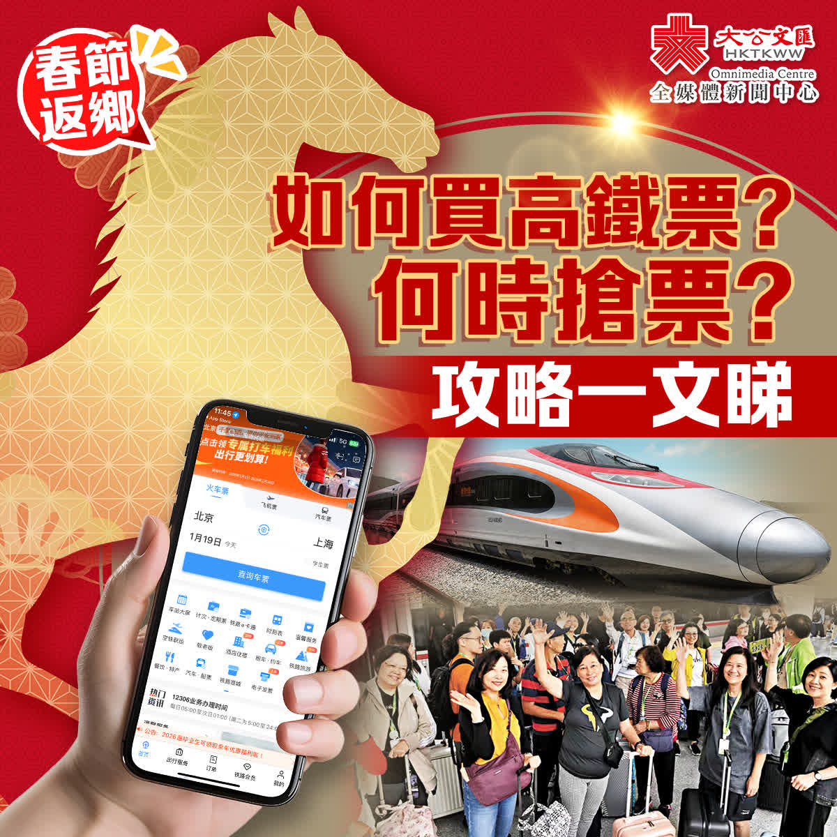 (大公文匯全媒體 記者 裘真)農曆新年臨近,香港不少家庭會「北上」返鄉!港人返鄉如何購買高鐵票?如何使用回鄉證在12306網站及APP上搶票?哪天開始搶票?大公文匯全媒體整理了最全攻略,快來一文睇清!