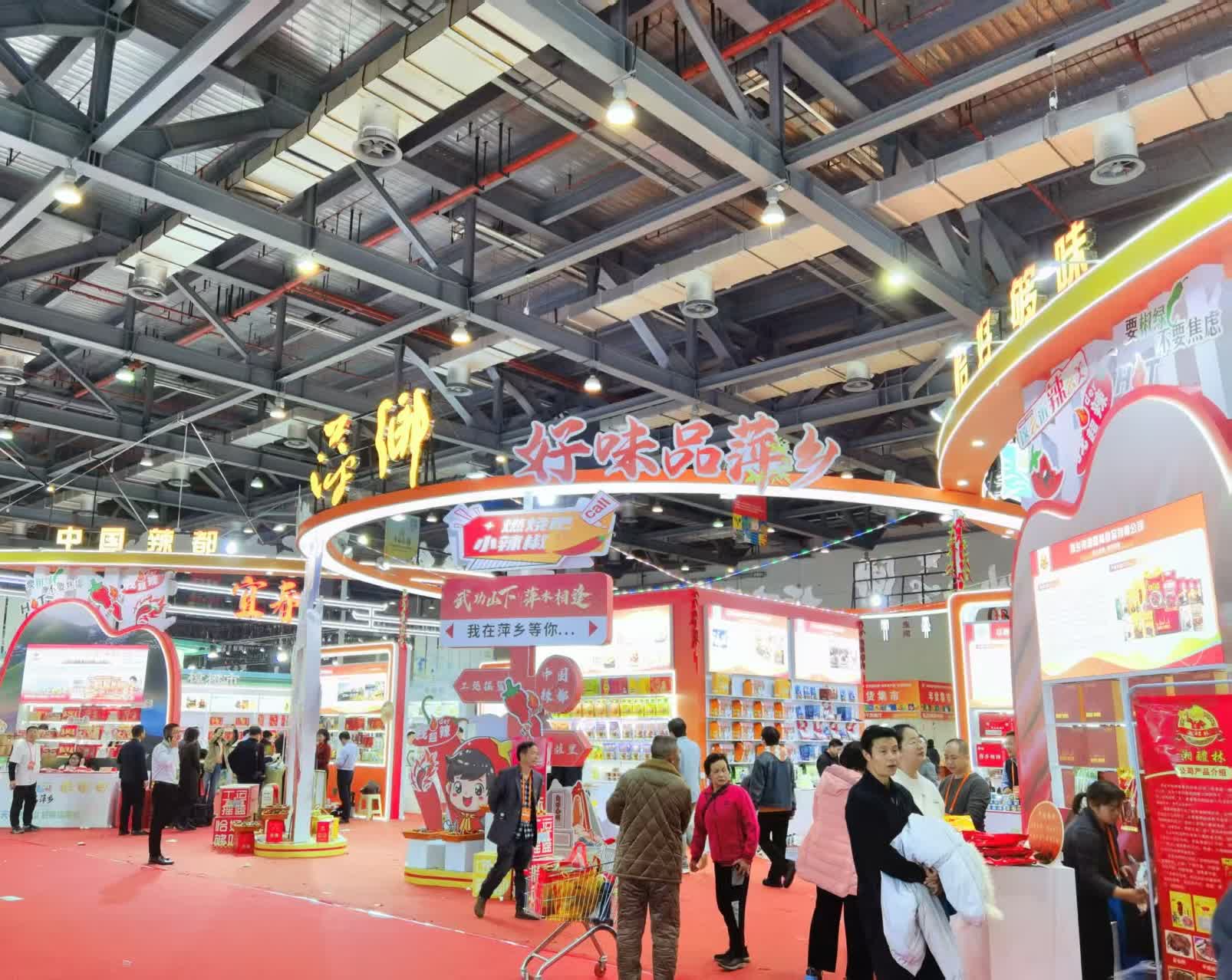 走進萍鄉館,濃郁的「辣韻」撲面而來。展館內不僅設置了特色辣製品展區、生態畜禽展區、非遺農產品展區等功能區域,還通過圖文展板、實物展示等形式,全方位呈現萍鄉農業產業發展成果。「花蝴蝶」辣條、蓮花白鵝、擂棗、牛肉等特色農產品也整齊陳列,充分展現了萍鄉「物華天寶」的農業資源稟賦,吸引了大批採購商和市民駐足諮詢。