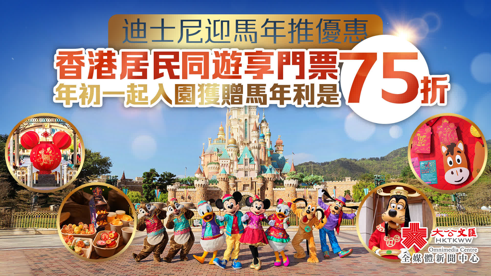 大公文匯全媒體報道,香港迪士尼今日(20日)公布,由1月30日至3月1日推出「奇妙年年」馬年新春慶祝活動,大年初一(2月17日)起入園更有機會獲贈小馬紅心馬年利是一封。另外,由1月24日至5月3日,香港居民可專享「快樂同遊」門票預訂優惠,兩人或以上同遊可享正價1日門票75折優惠,並獲額外餐飲及商品折扣優惠券,兩人同遊可節省高達470元!