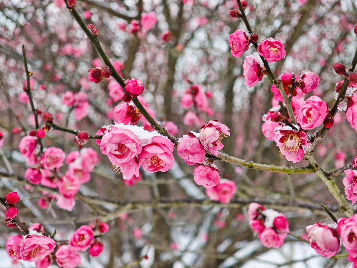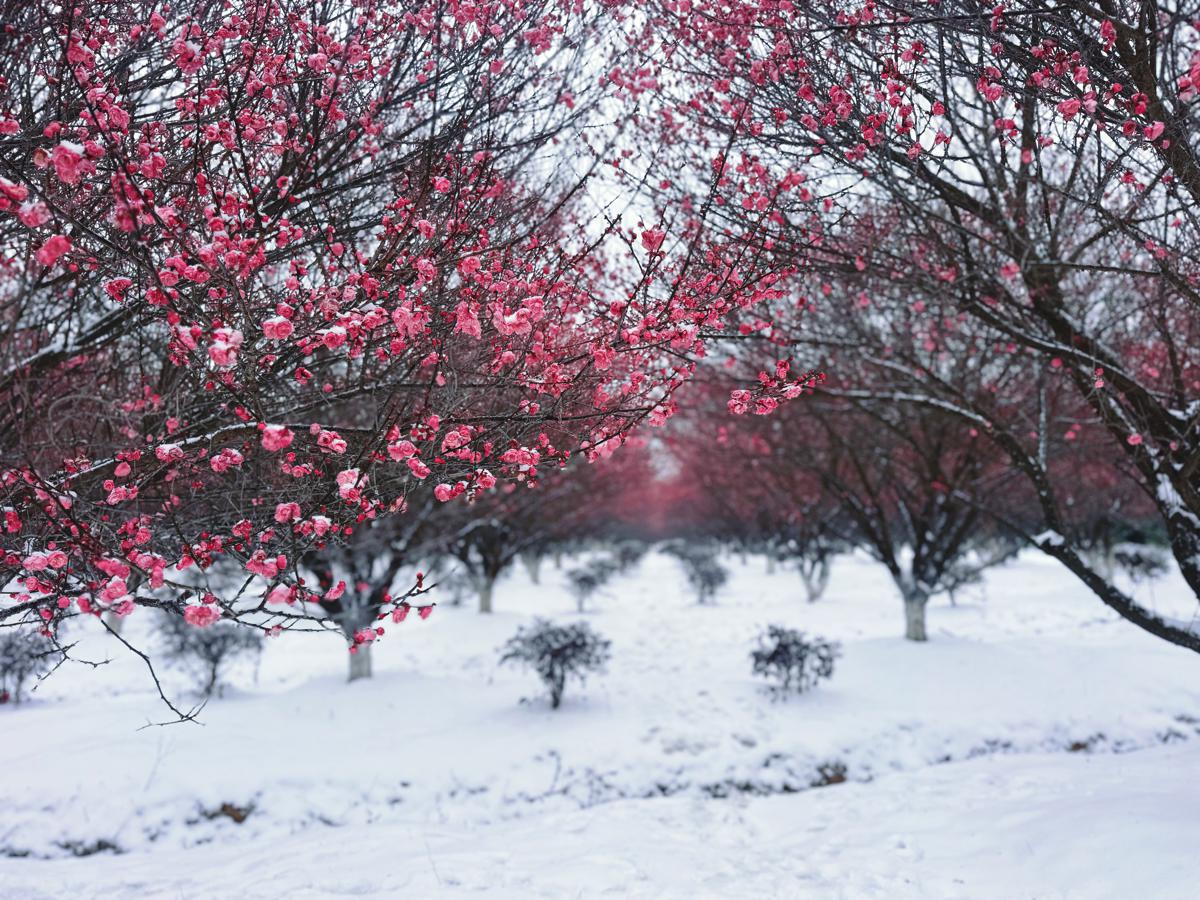 A red plum forest under a blanket of snow in Tongzhouling village, Wuhan. [Photo by Xu Ting/For chinadaily.com.cn]