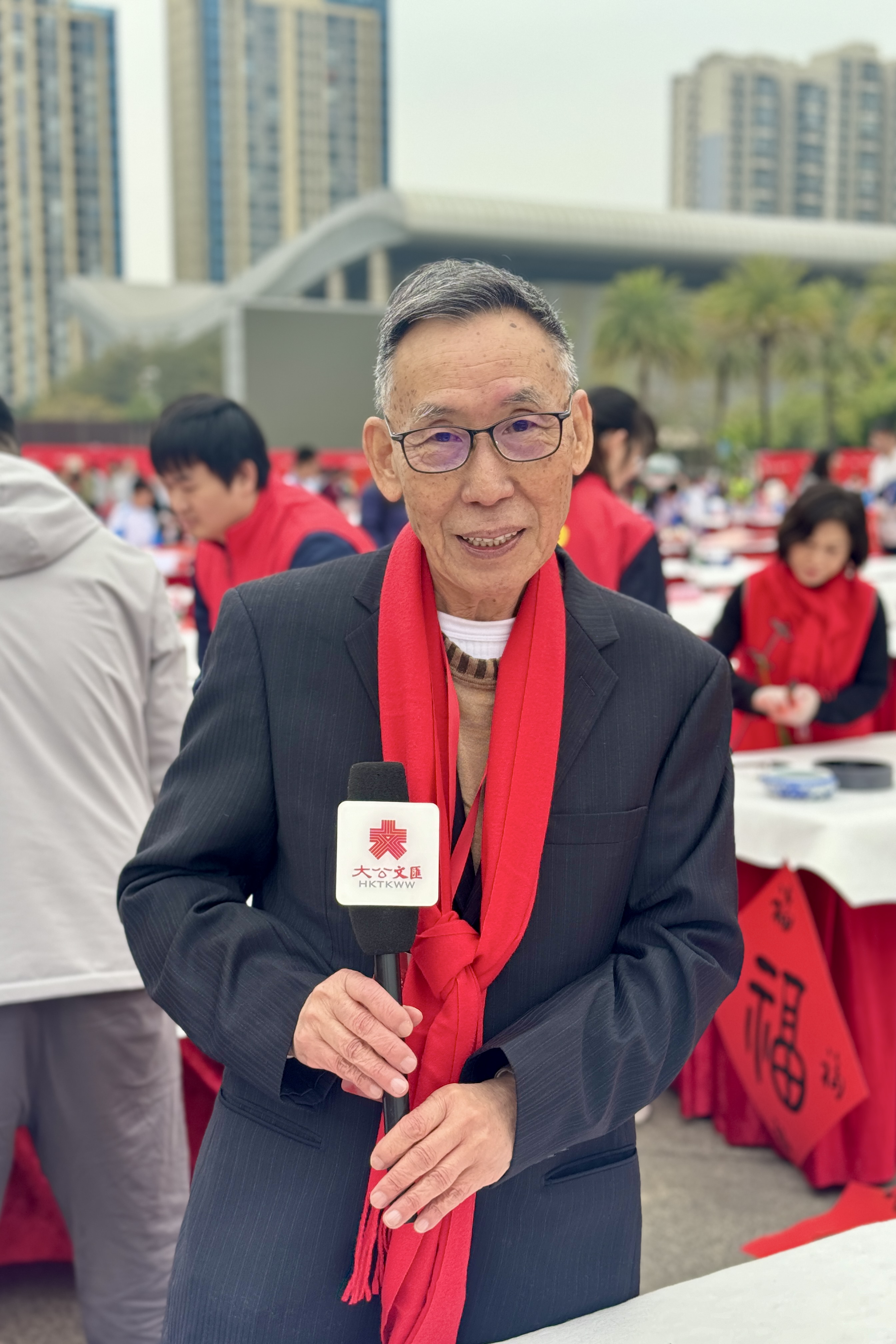 「現場好熱鬧,傳承書法文化的氛圍很濃厚。」葉炯光表示,寫揮春與「福」字融合了中國書法文化和春節文化兩種傳統文化,蘊含着人們對一年新生的喜悅和祝福。他告訴記者,中國書協香港分會即將在全港範圍內推出80多場同款活動,以書法藝術與香港民眾同迎新春。粵港澳三地文化同根同源,他建議利用如今融合發展、交通便利的優勢,攜手在書法文化和春節文化傳承上努力,例如共同舉辦書法、楹聯比賽等,以激發全社會對書法的熱情和興趣。