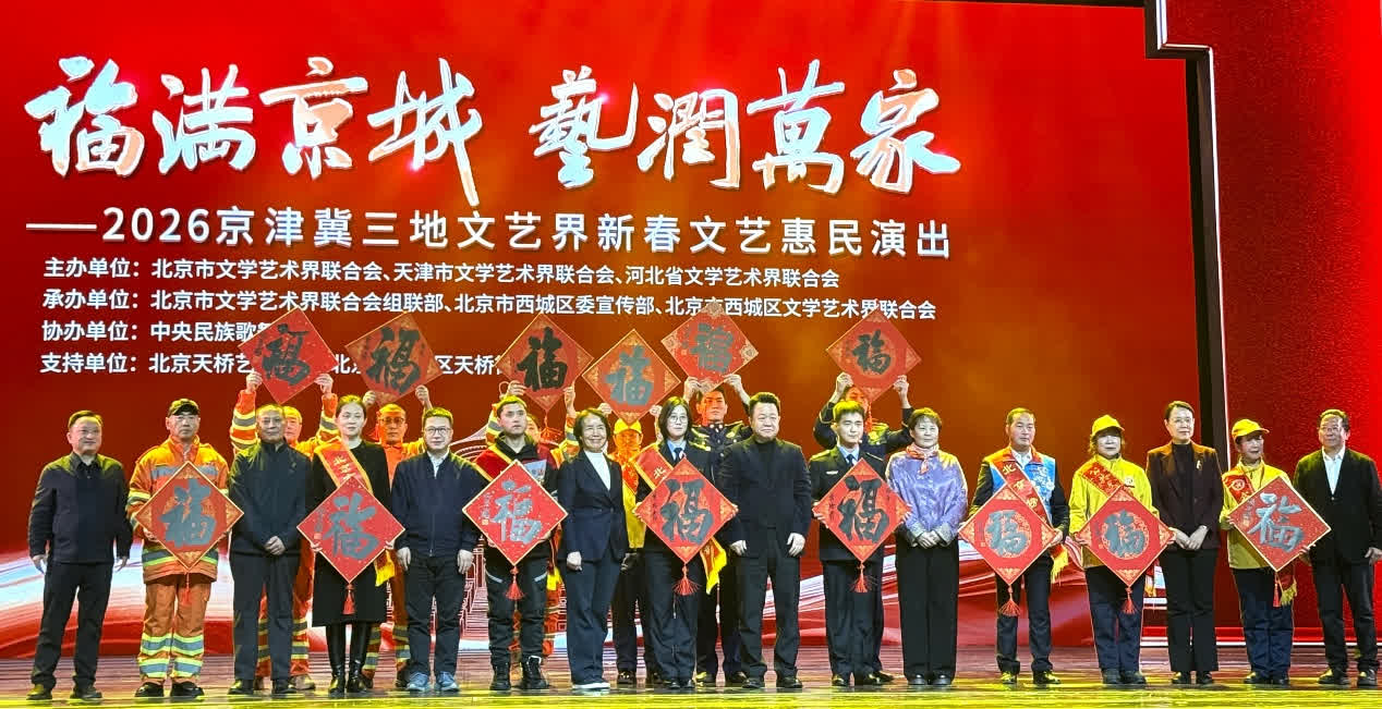 1月20日晚,「福滿京城 藝潤萬家」2026京津冀文聯新春文藝惠民演出在北京正式啟幕。這場由北京市文聯、天津市文聯、河北省文聯聯合主辦的年度文化盛事,以「1+N」活動形式拉開京津冀新春文藝惠民系列活動序幕,800餘名來自三地的領導嘉賓、先進工作者、一線建設者與社區群眾代表歡聚一堂,在多元藝術盛宴中感受文化溫度,共賀新春佳節。