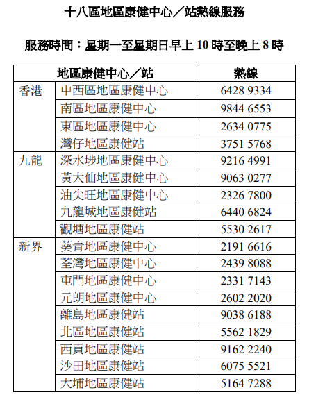 截至1月20日,18區康健中心熱線累計接獲363人次的來電。另外,有超過300名私營家庭醫生參加義診計劃,涵蓋超過450個服務點,當中包括8間私家醫院,累計已處理94宗轉介。中醫義診服務則已有超過360名中醫師參加,涵蓋超過620個服務點,累計已處理57宗轉介。牙醫免費鑲配假牙服務有超過110名私營牙醫參加,涵蓋超過150個服務點,累計已處理31宗轉介。