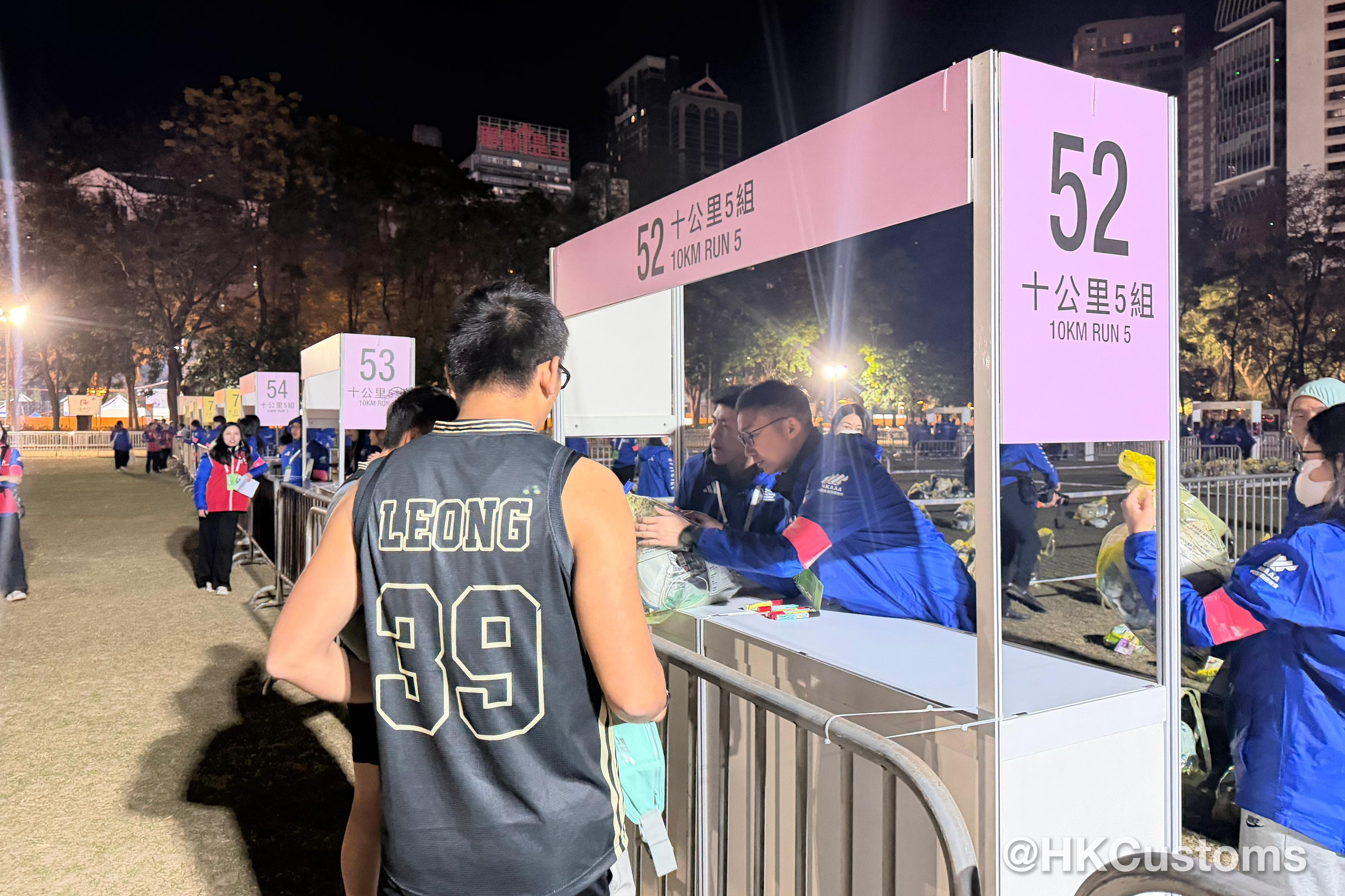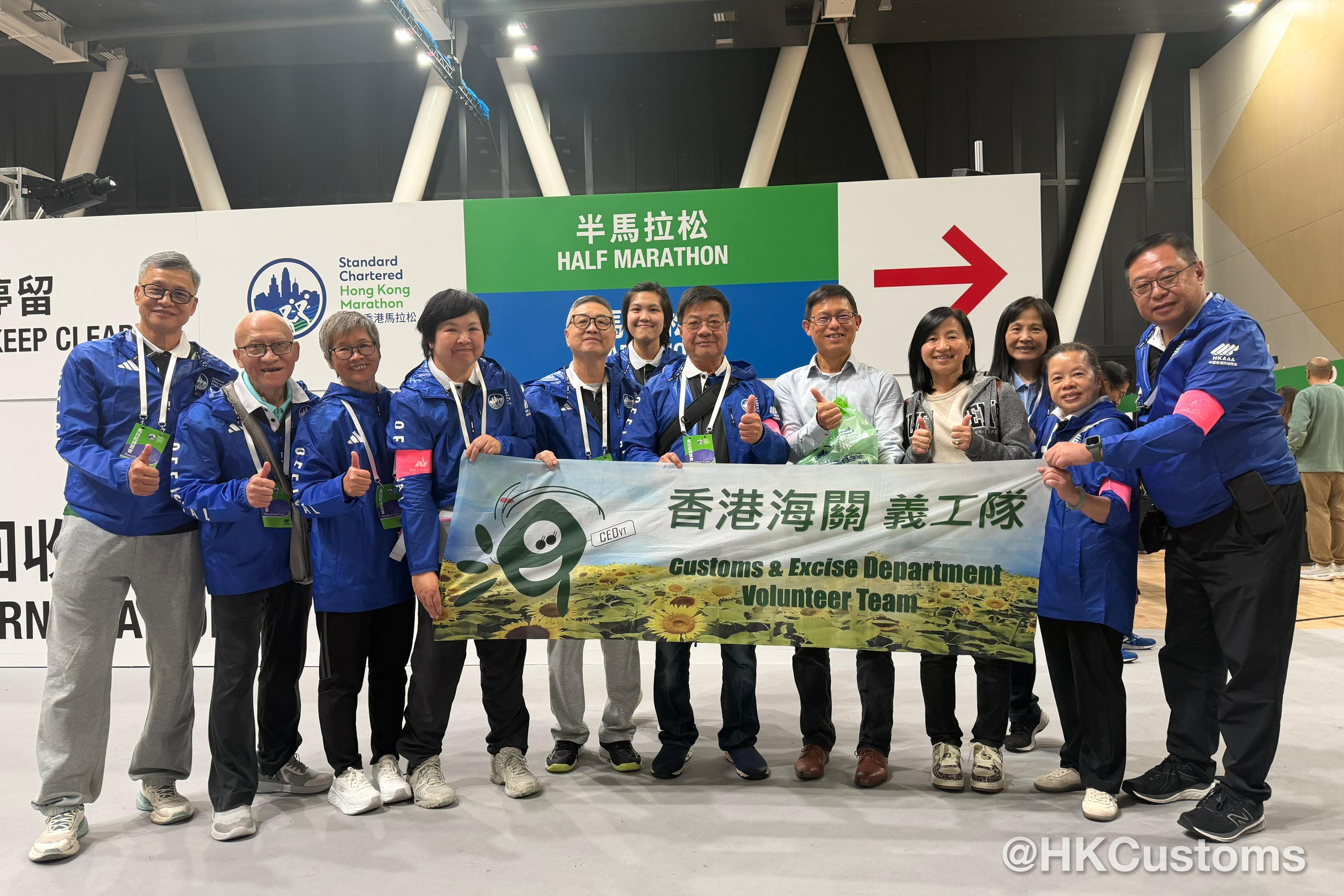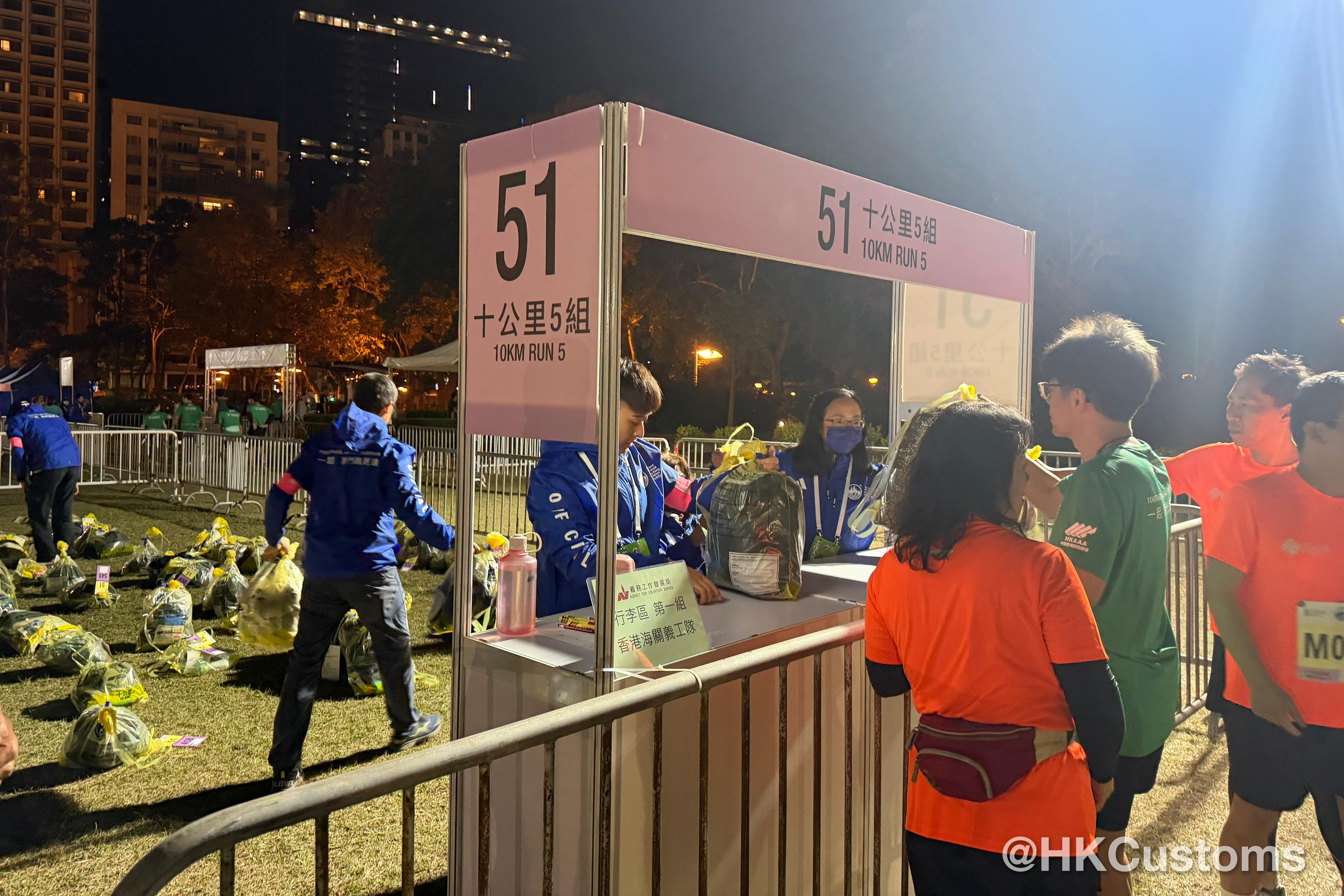是次馬拉松有超過7萬人參與,海關義工隊全力支援。他們除了在賽前於啟德體藝館協助分發跑手包,賽事當日清晨亦於維園安排行李寄存,讓參賽者可輕鬆上陣。