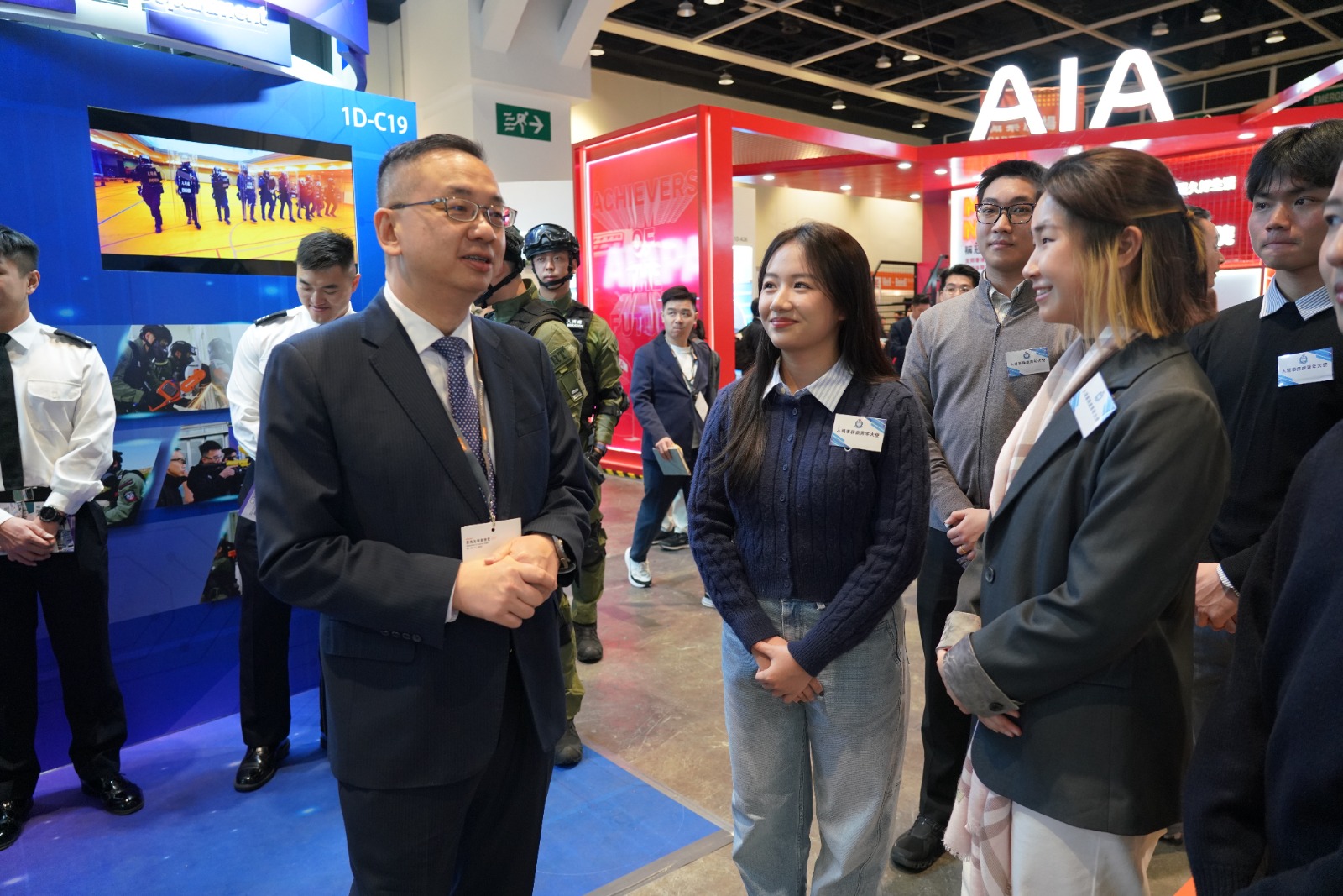 處長郭Sir和助理處長歐陽Sir更親自到場為同事打氣,也跟參觀的公眾人士以及在場的青少年互動交流,郭Sir更擔任開幕禮的剪綵嘉賓,為這次博覽揭開序幕。