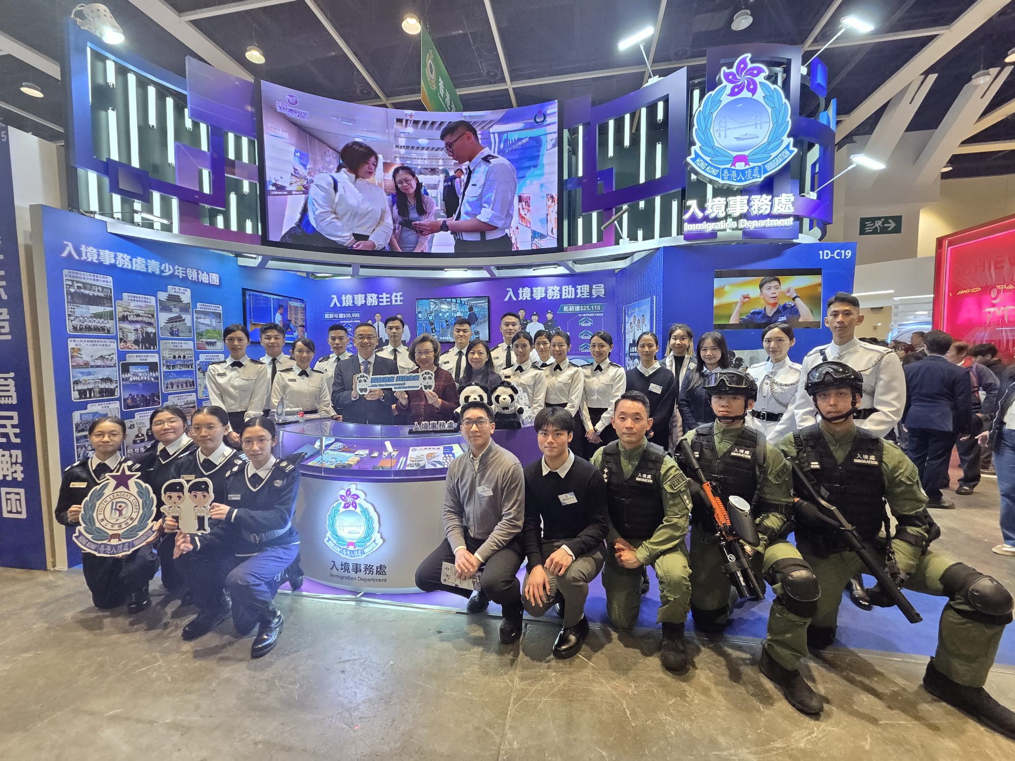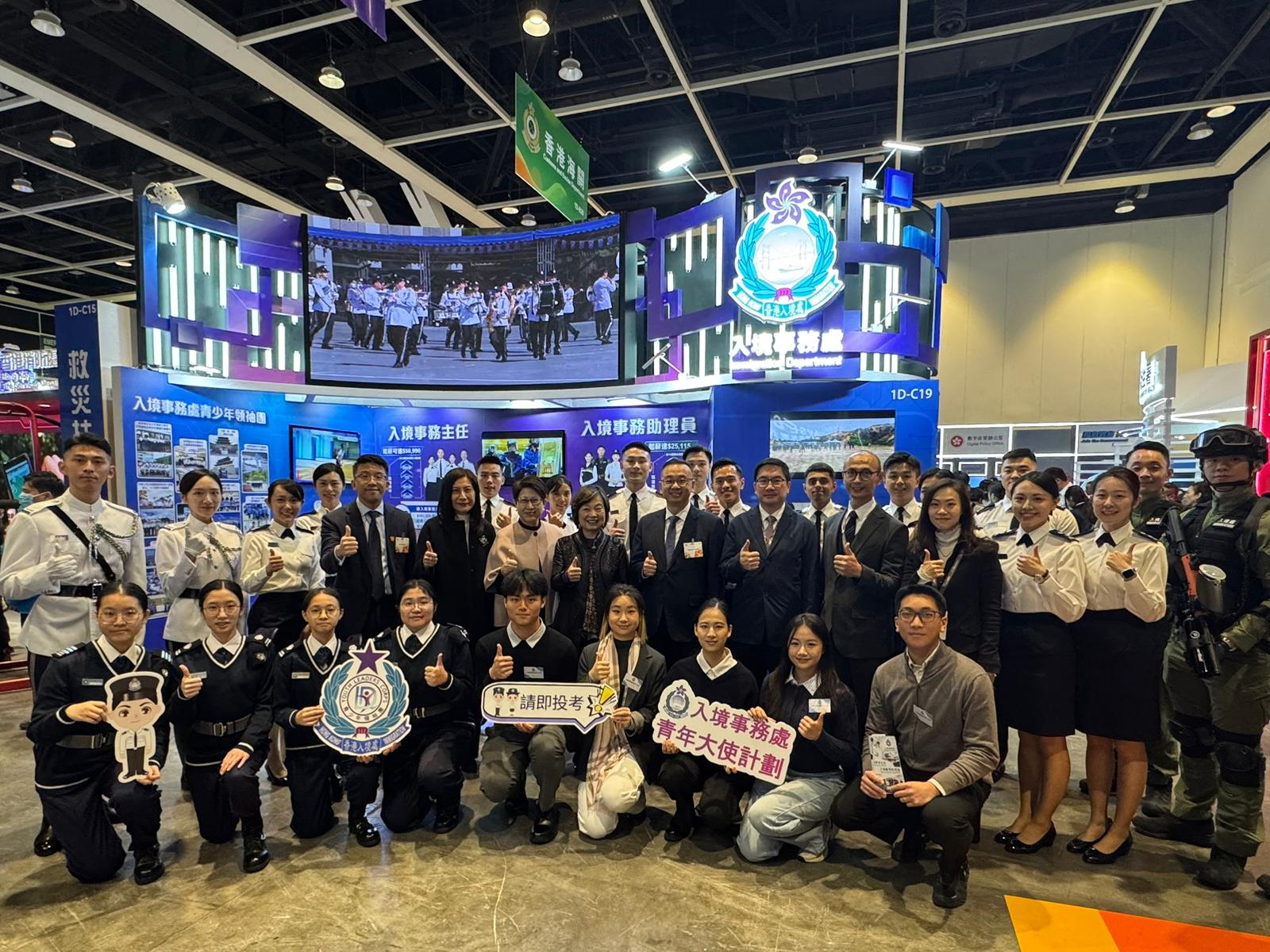 這次攤位的內容非常豐富,有來自不同崗位的同事參與,除了有部門儀仗隊和青山灣入境事務中心緊急應變隊,入境事務處青年大使和入境事務處青少年領袖團隊員也在場為大家全方位介紹部門的最新資訊。
