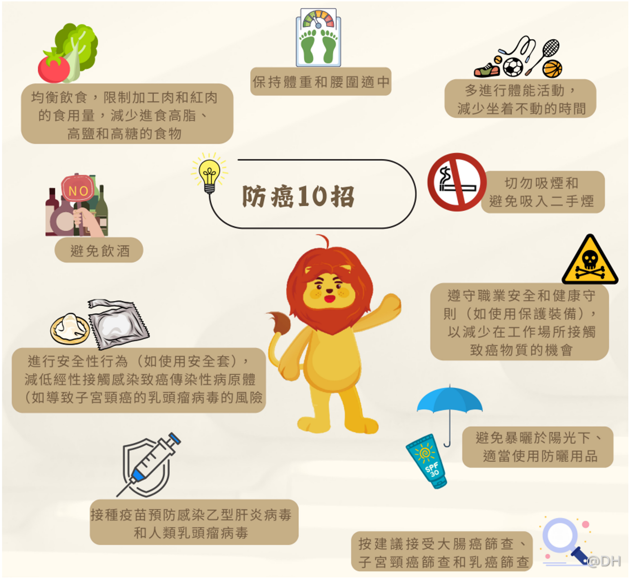如欲獲取準確並可靠的癌症資訊,包括癌症預防 及相關篩查建議,請瀏覽「癌症網上資源中心」 (網址:www.cancer.gov.hk/tc/index.html)。