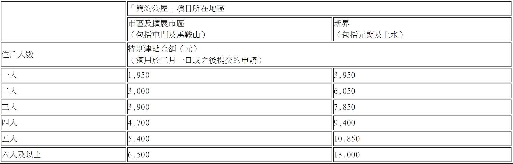 住戶特別津貼上調 3·1起生效