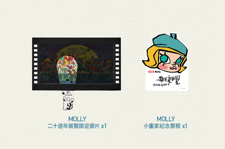 門票:$99(普通票),包含單人入場資格及展覽紀念品1份(MOLLY二十周年展覽限定菲林膠片/小畫家紀念票尾)