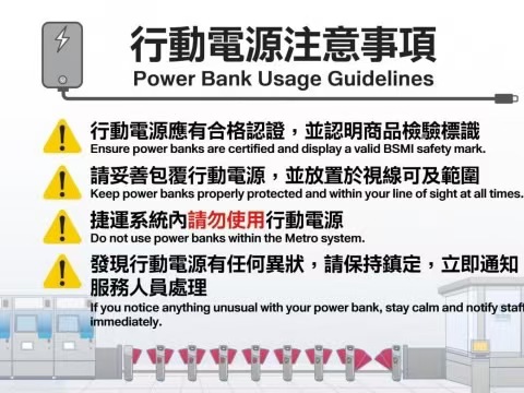 大公文匯全媒體報道,流動電源(香港俗稱尿袋,內地稱充電寶)品質參差,經常發生自燃甚至爆炸意外。台北捷運1月23日公布新規,呼籲旅客進入捷運範圍內請勿使用流動電源並應妥善保管,若因使用或保管不慎導致失火等公共危險情況,將依法究辦及求償。