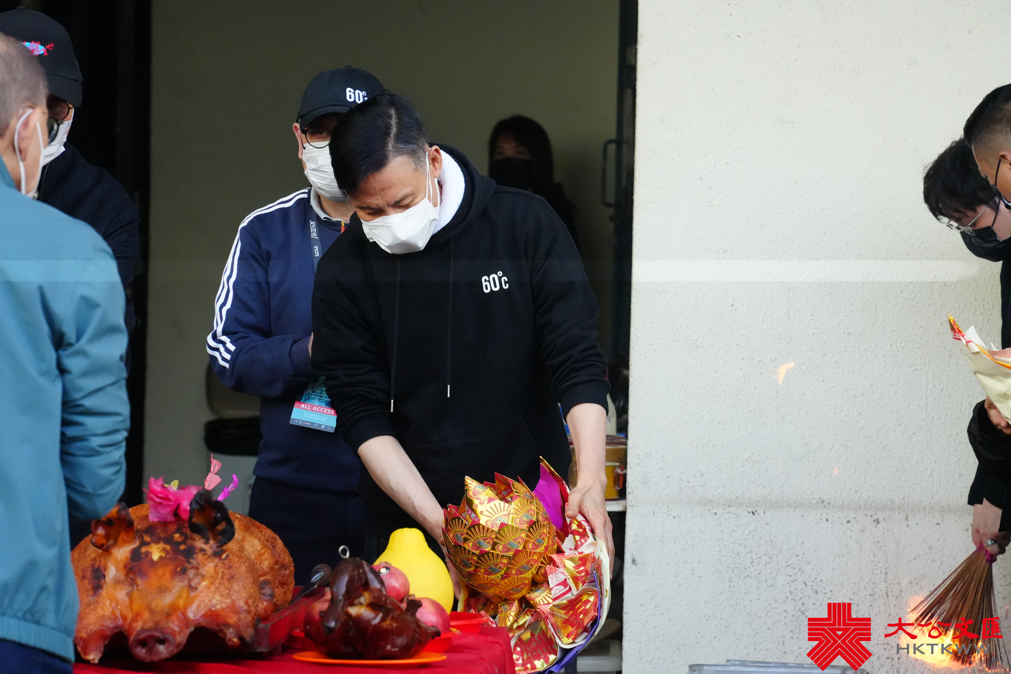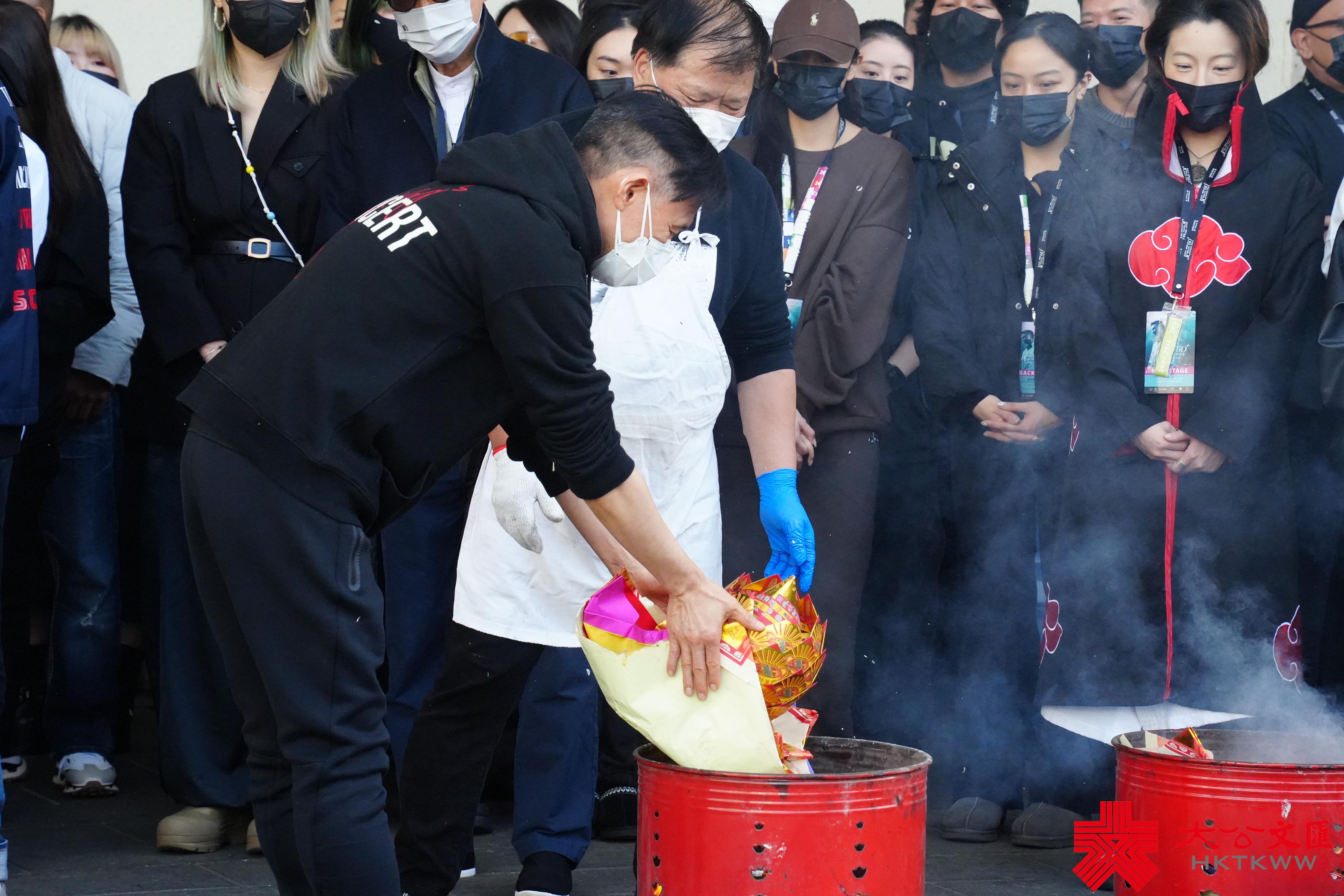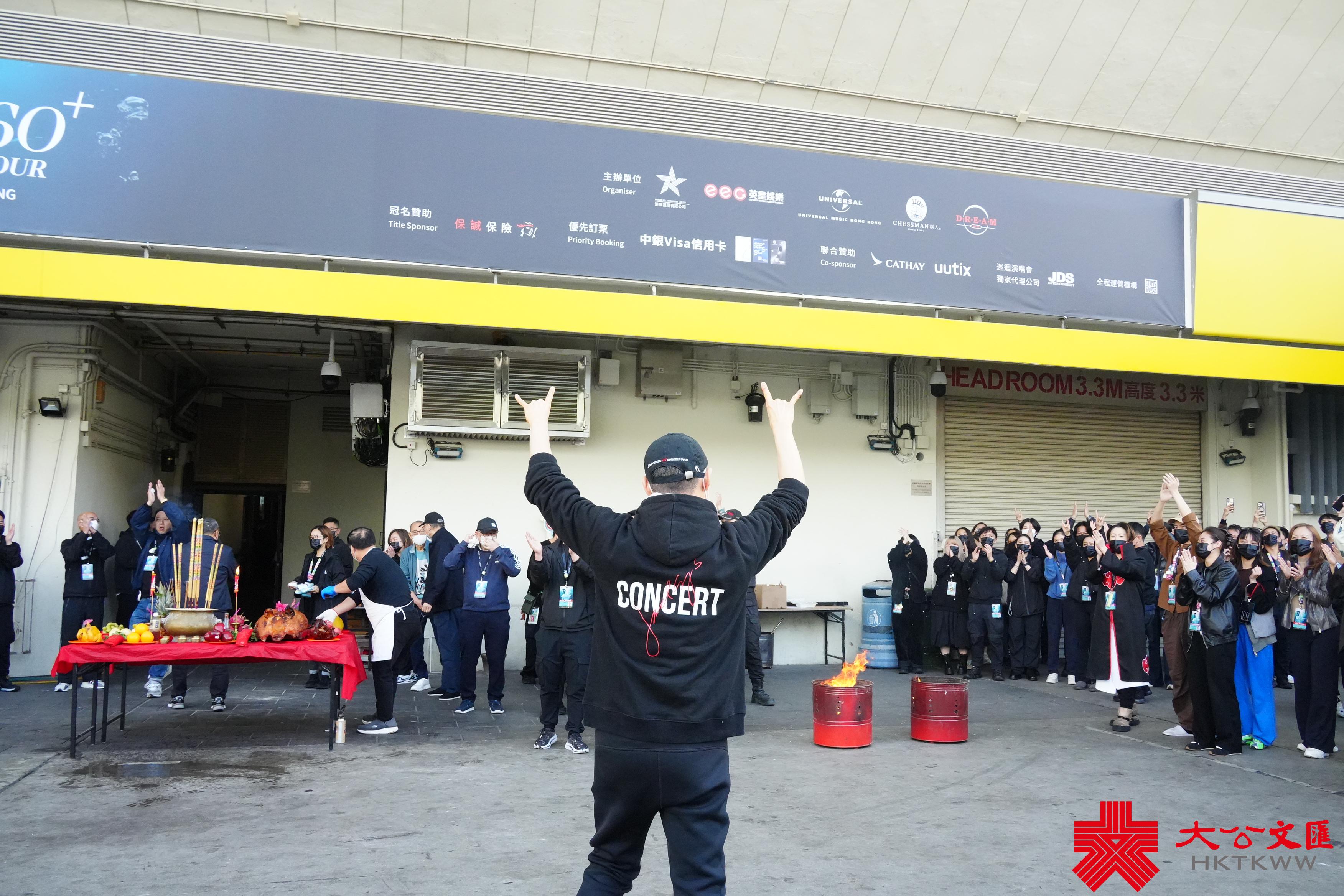 (大公文匯全媒體記者 王俊傑)為期兩年的「歌神」張學友《60+巡迴演唱會》今日(24日)即將迎來意義非凡的收官。身穿黑色連帽衛衣的張學友,在英皇集團主席楊受成等人的陪同下進行拜神儀式,希望演出順利,一切平安。