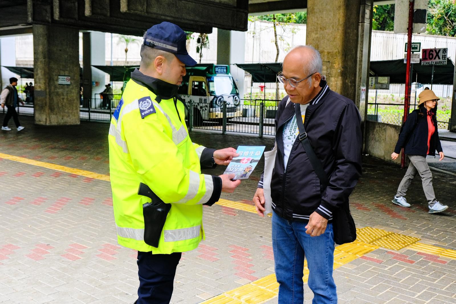 大公文匯全媒體報道,強制安裝和佩戴安全帶新規定今日(25日)起生效,警方早上於多區大型交通交匯處及旅客乘車熱點加強宣傳,並向司機及包括旅客在內的乘客派發海報、傳單及椅背貼等宣傳刊物,提醒相關法例要求。