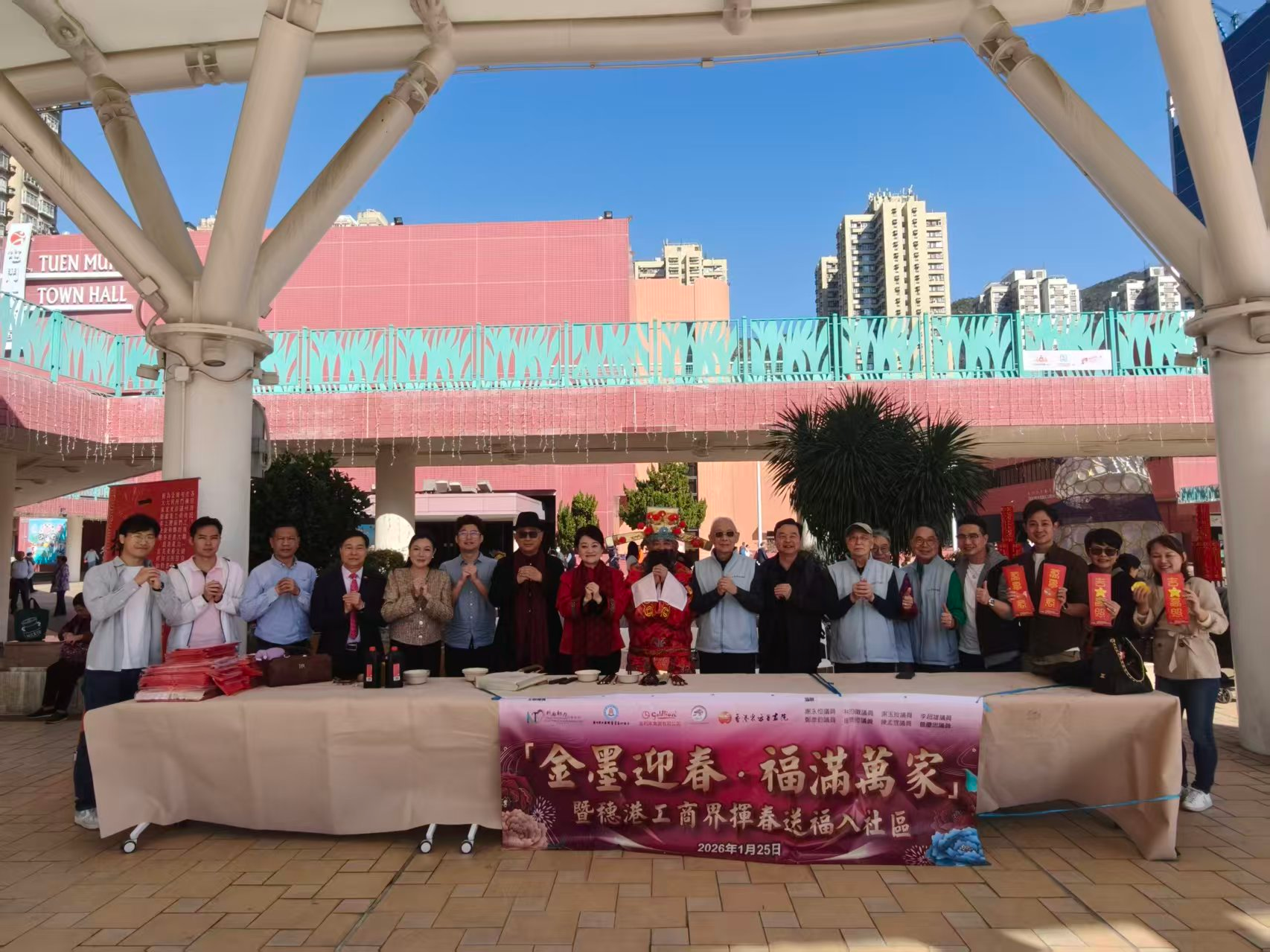 大公文匯網報道,歲末臨春,福氣盈門。今日(1月25日),在廣州市工商聯(總商會)、新界屯門工商聯及屯門議會議員的鼎力支持下,一場主題為「躍馬迎春 共賀新年」的揮春送福活動在香港屯門熱鬧登場。活動由廣州市工商聯書畫藝術協會牽頭,聯合金利來集團與香港東方書畫院共同主辦,以中華傳統書法藝術為橋梁,為屯門市民送上滿載新春祝福的墨寶,更架起粵港兩地文化交流與情感聯結的緊密紐帶。