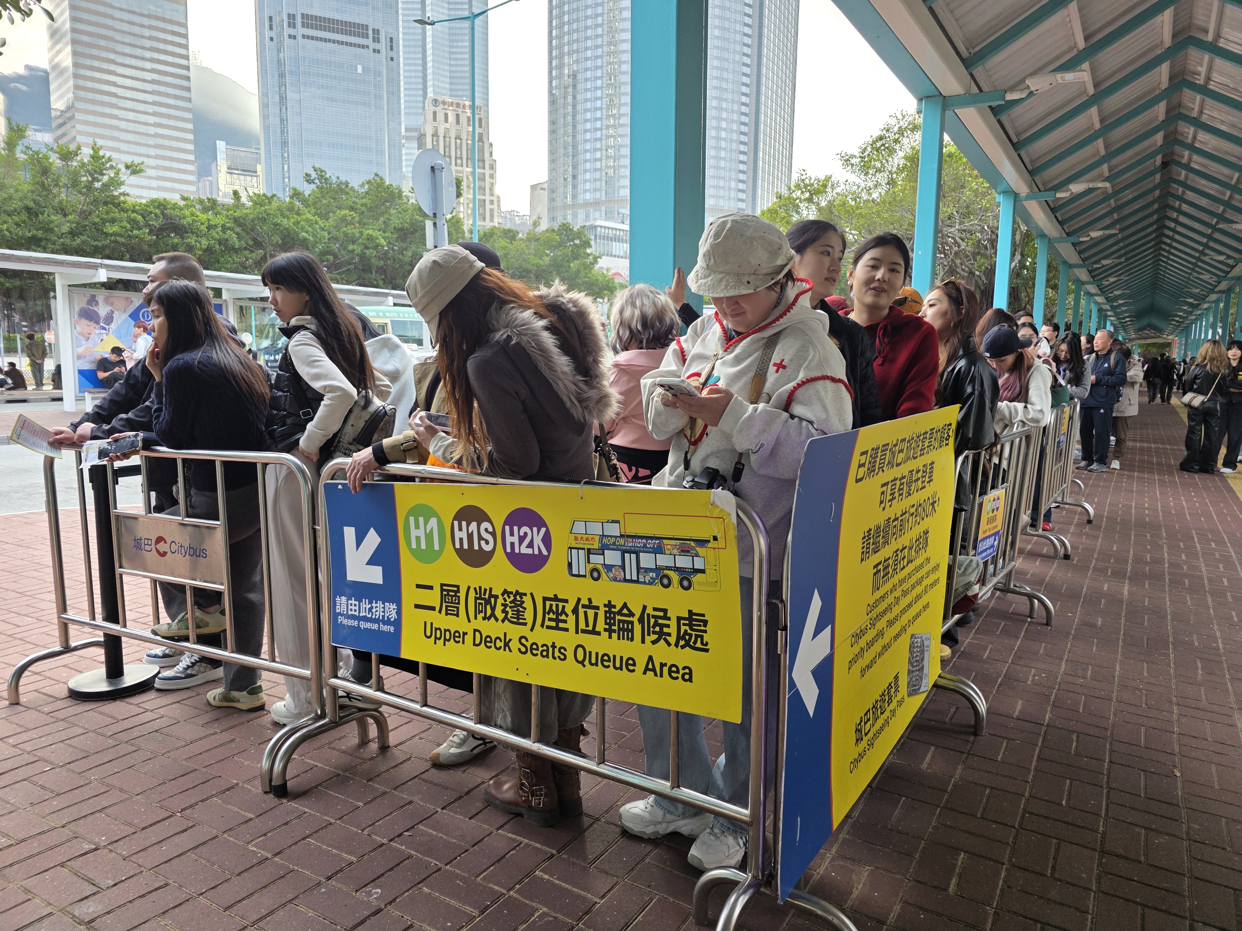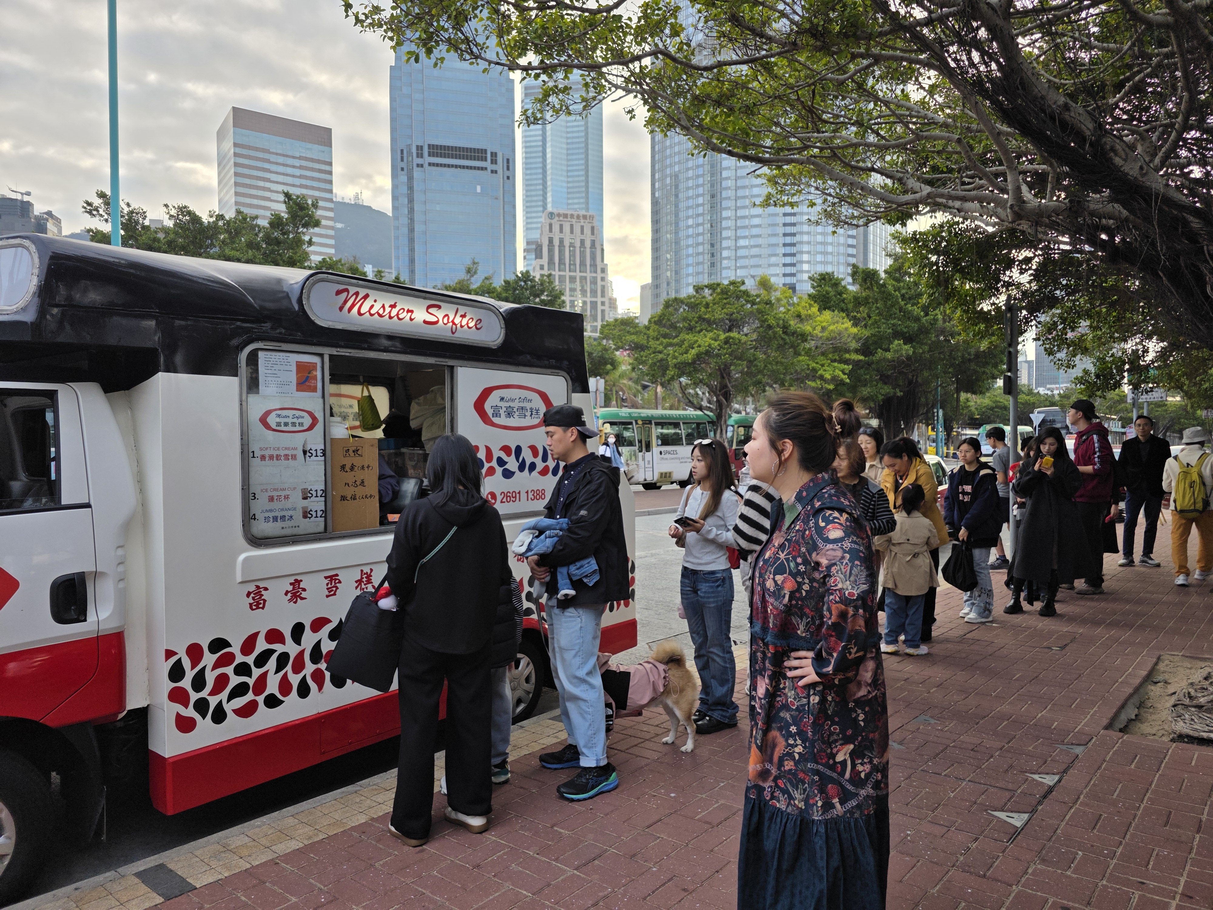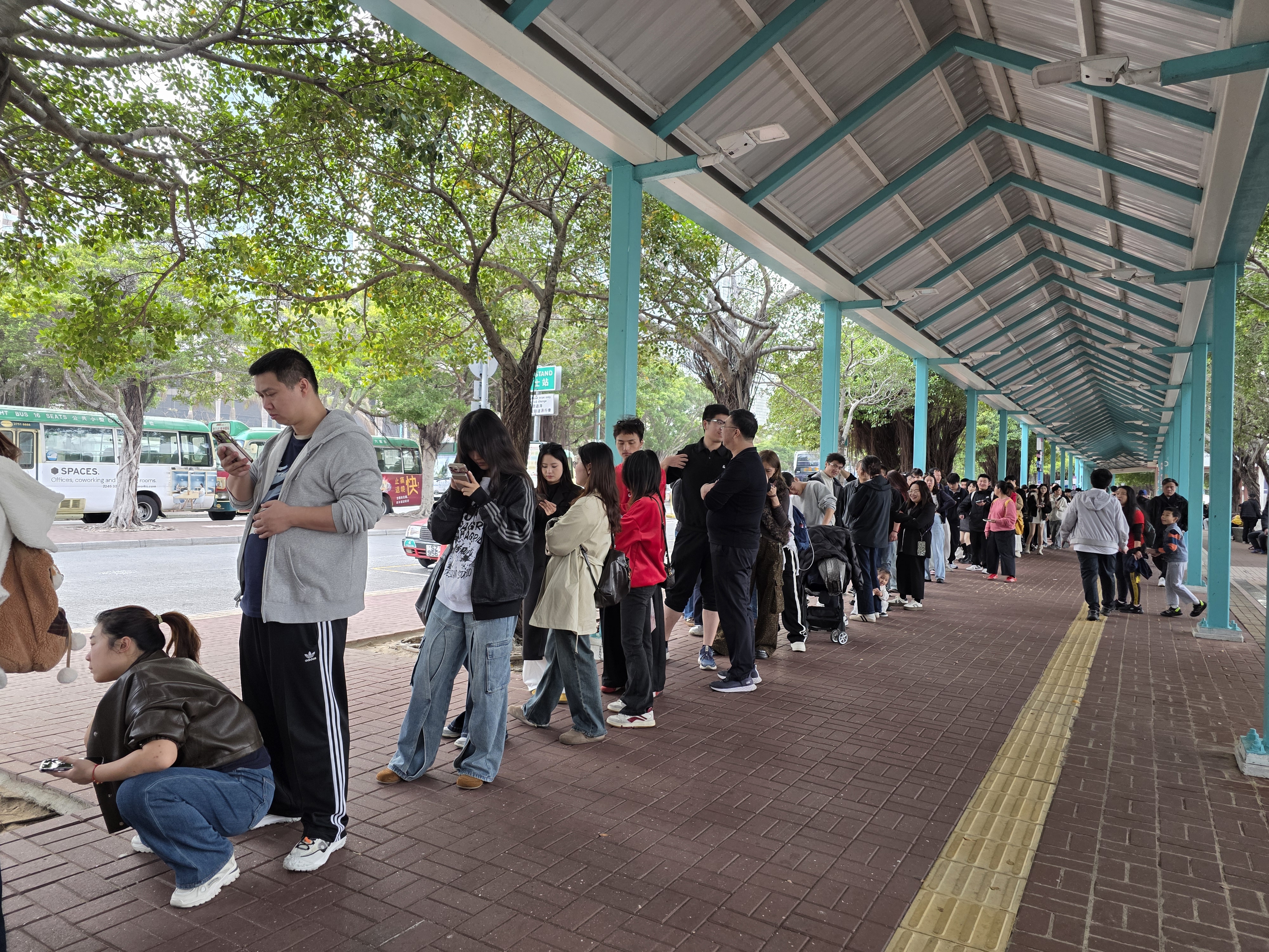 在中環碼頭巴士車站,現場約200人輪候城巴觀光巴士;而打卡熱點富豪雪糕車同樣大排長龍,在尖沙咀碼頭,約30人排隊購買雪糕;在中環碼頭,亦有數十人排隊輪候購買富豪雪糕。