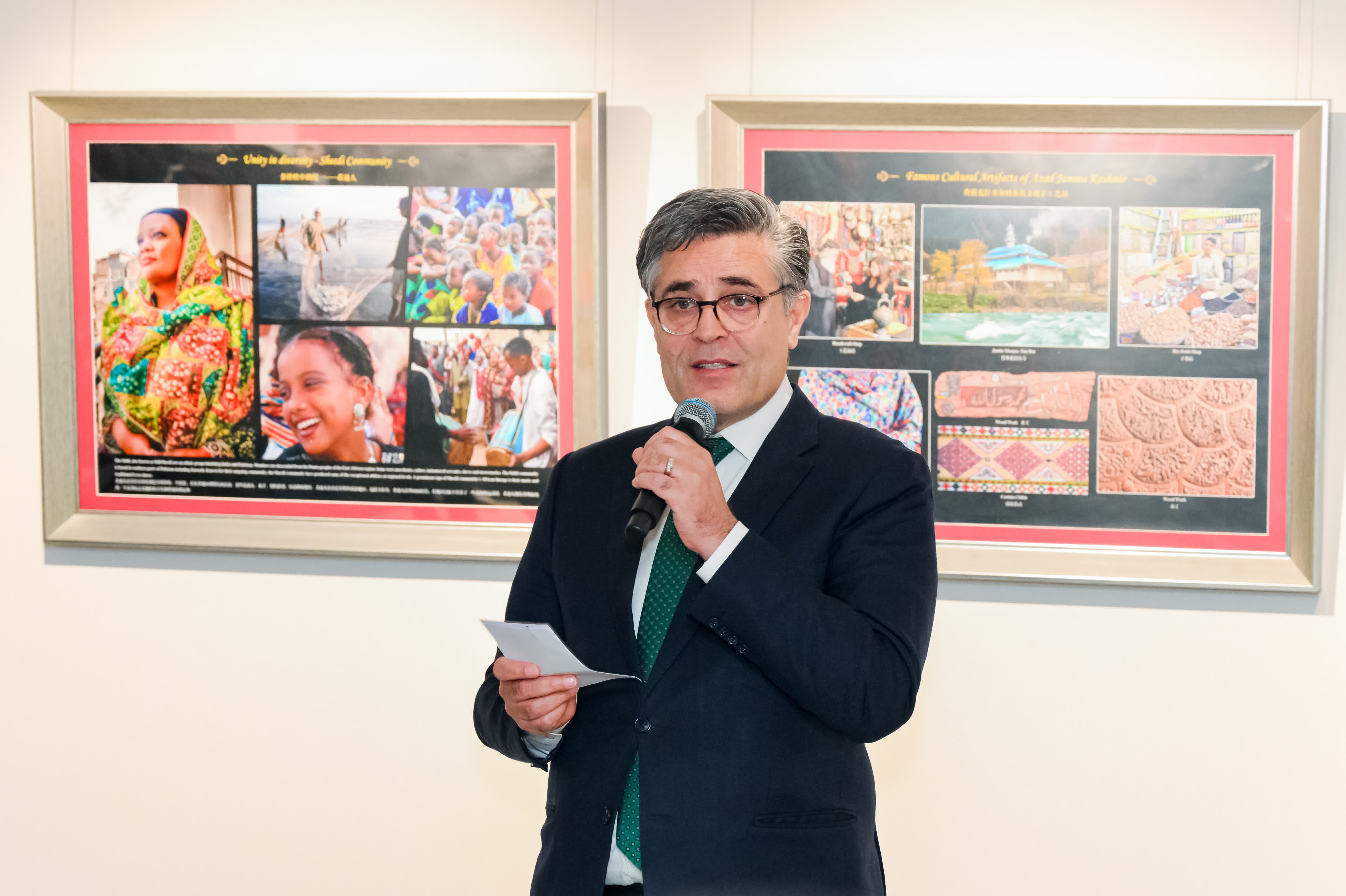 卡裏爾·哈什米大使在致辭中表示,今年是巴中建交75周年,是具有重要意義的一年。無論國際風雲如何變幻,巴中關係始終堅如磐石、互信無間。此次展覽中,每一幅作品都講述着一個獨特的故事,這些作品串聯起一場視覺之旅,呈現巴基斯坦的古老淵源、伊斯蘭文化傳統、獨立運動歷程、多樣地理風貌、歷史古蹟、宗教建築、藝術成就、科技發展、體育風采、多元語言,以及巴基斯坦人民的文化多樣性。展覽所呈現的巴基斯坦並非單一敘事,而是一個層次豐富、不斷發展的文明。巴基斯坦駐華大使館衷心感謝中國國際文化傳播中心、紀鴻戰略(國際)投資有限公司及其他中方夥伴為本次展覽提供的支持與幫助。在慶祝這一重要里程碑的同時,我們相信,隨着文化交流日益深化、民間往來愈發緊密,秉持着對歷史的共同尊重,巴中關係的下一篇章必將更加精彩。雙方將攜手努力,在輝煌歷史的基礎上,構建更緊密的中巴命運共同體。