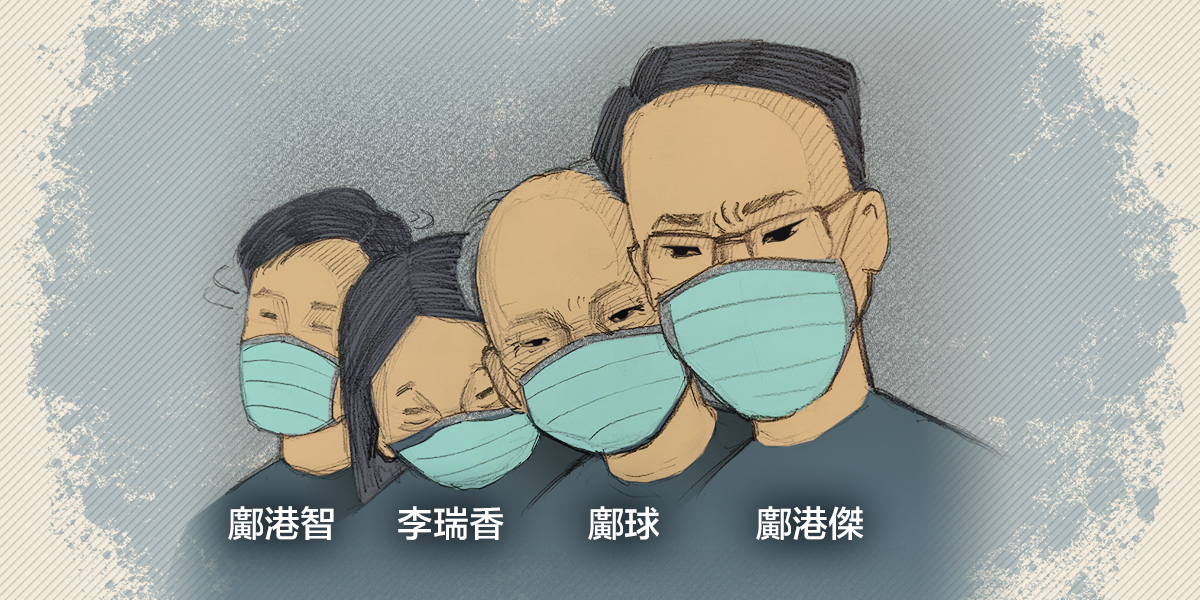 三名被告依次為死者前大伯鄺港傑(33歲,司機)、前家翁鄺球(67歲,退休人士)、前夫鄺港智(30歲,無業),三人被控於2023年2月21日,在香港謀殺蔡天鳳,並在同月21至23日阻止合法埋葬蔡天鳳的屍體。