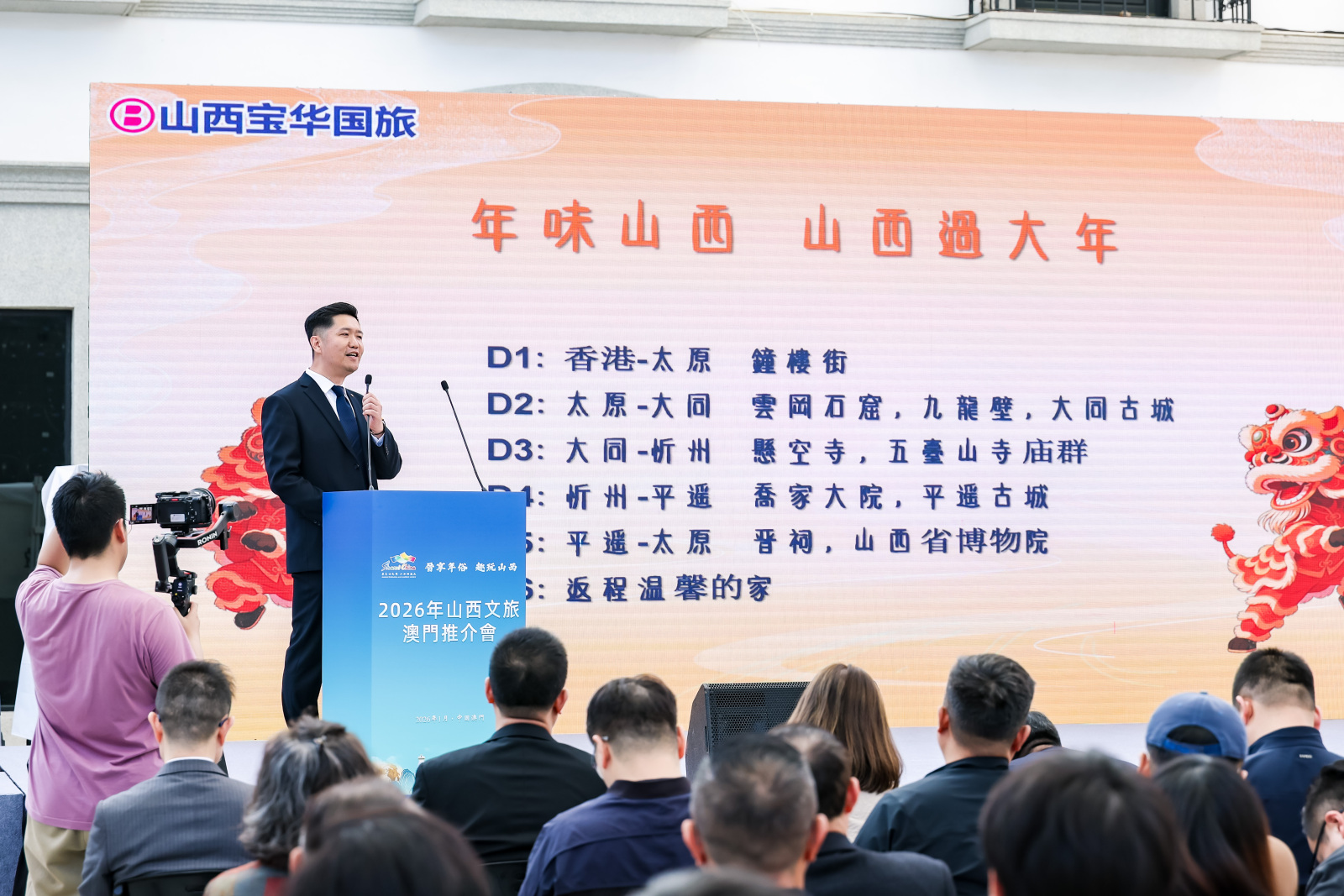 (大公文匯網記者 王祥康、楊奇霖)以「晉享年俗 趣玩山西」為主題的2026年山西文旅推介活動今(26)日在澳門舉行,現場設有山西文旅產品、景點等主題推介環節,以及木版年畫、人像剪紙等非遺項目展示互動體驗區。活動旨在深化晉澳兩地文旅交流與合作,向澳門同胞展示山西豐富的年俗文化與冬季旅遊資源,吸引更多港澳遊客親身感受華夏古文明的獨特魅力。