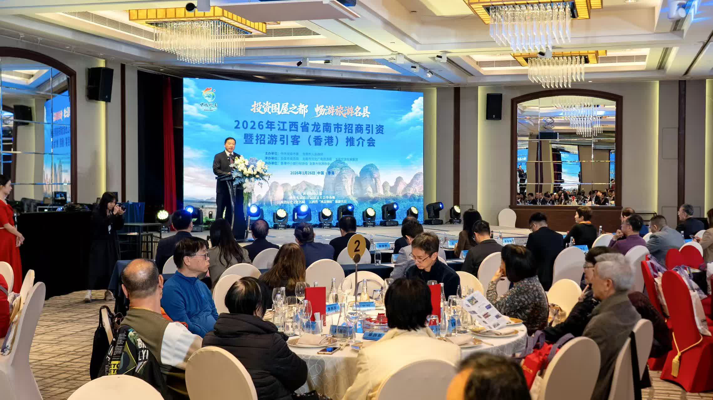 由江西省龍南市委、龍南市人民政府主辦的2026年龍南招商引資暨招遊引客推介會26日在香港舉行,活動以「投資圍屋之都·暢遊旅遊名縣」為主題,旨在以「會」為媒聯通革命老區與國際都會,向香港展示龍南獨特的文旅資源和人文風情,深化境外交流合作,共謀發展、共享機遇。