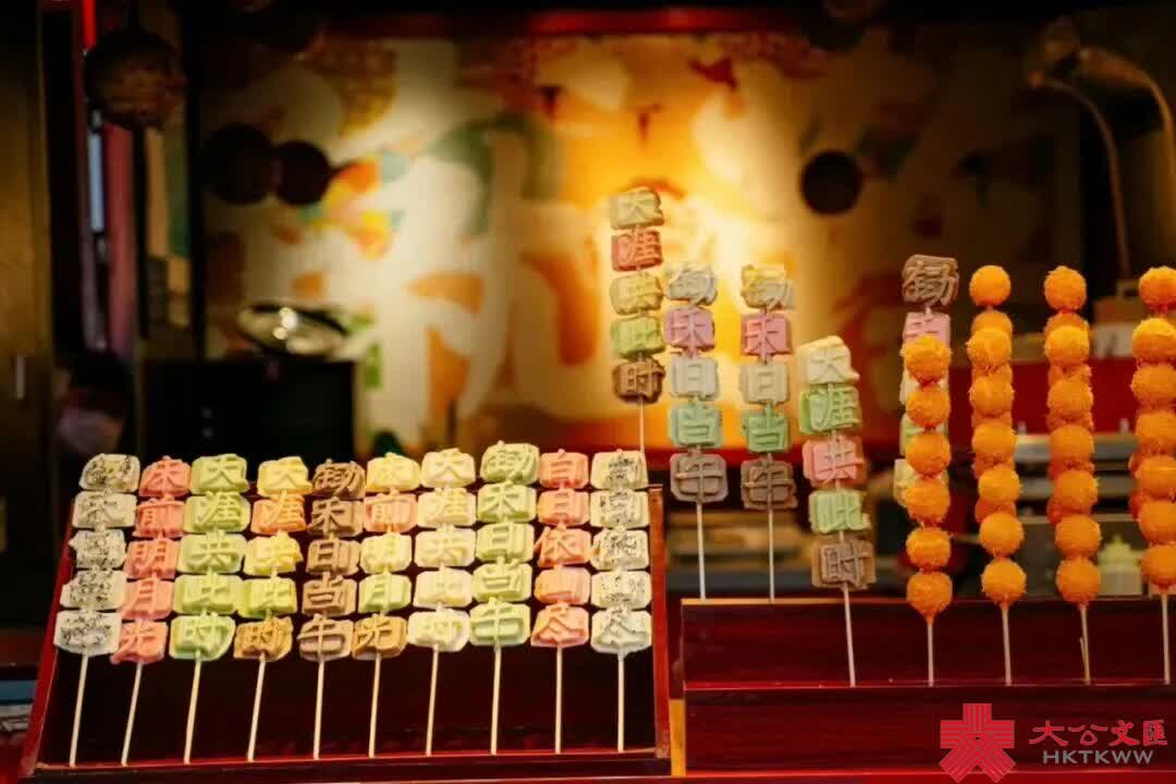 在位於大唐不夜城的唐食坊,「可以吃的唐詩」——唐詩燒也讓人們欲罷不能。唐詩燒是一種糕點,每款都藏着唐詩密碼,用竹籤串起來,一句吃食一句詩,讓人們的味蕾與心靈共赴盛唐之約。