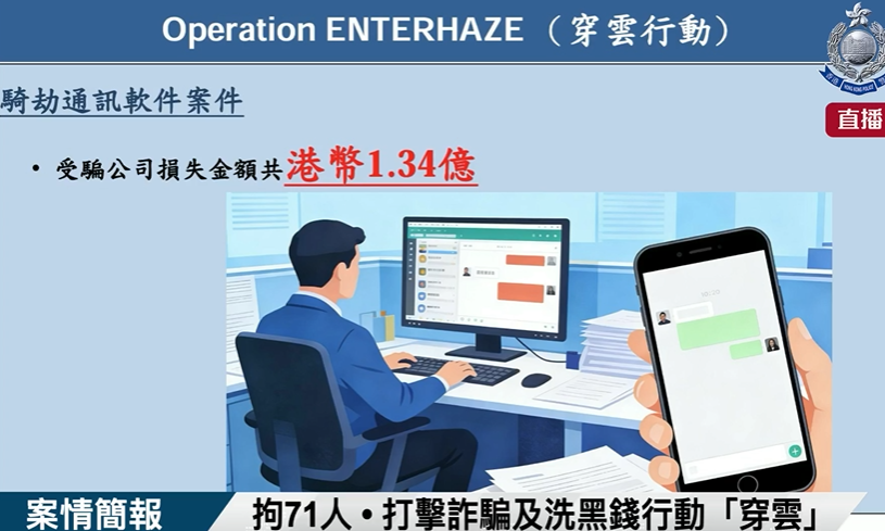 警方表示,被捕的71人報稱的職業包括學生、家庭主婦、地盤工人及保安等。他們涉嫌干犯「洗黑錢」罪行,受害人年齡介乎18至68歲,損失金額由220元至1.34億元不等,累計損失超過2.14億元。受害人涵蓋不同社會背景,其中亦包括部分高收入及高學歷人士。職業分布方面,目前已知涉及文員、律師及牙醫等多種行業。