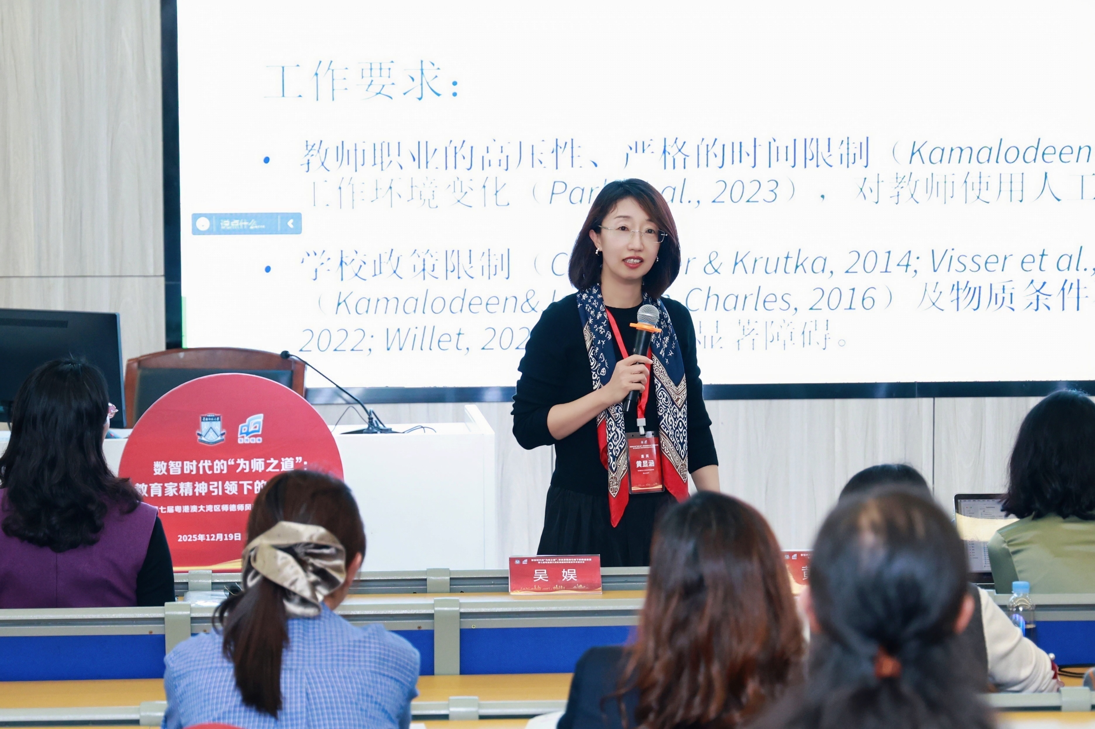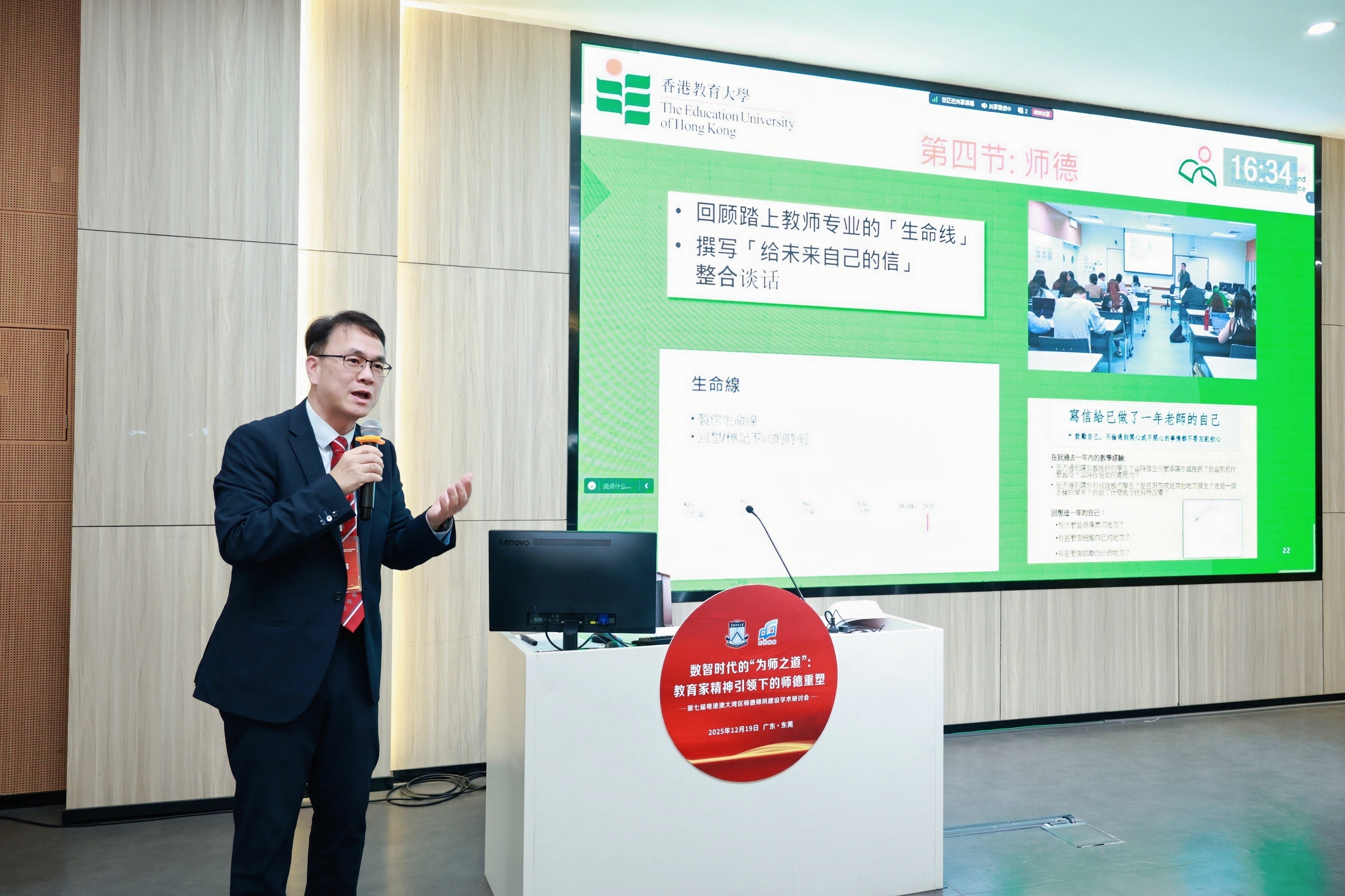 是次研討會由教育部教師工作司及廣東省教育廳指導、教育部師德師風建設基地(華南師範大學)主辦,以「數智時代的『為師之道』:教育家精神引領下的師德重塑」為主題,於2025年12月19日在東莞中學松山湖學校舉行,吸引近500位來自全國各地的教育工作者參加。