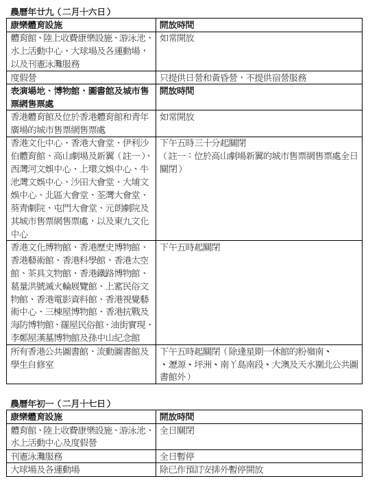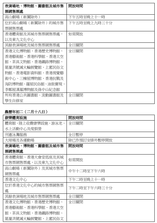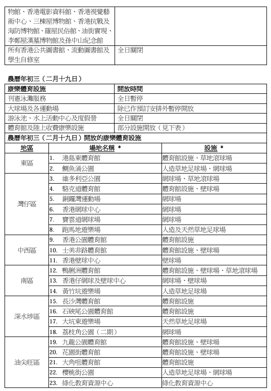 關鍵詞:康文署農曆新年春節康體設施