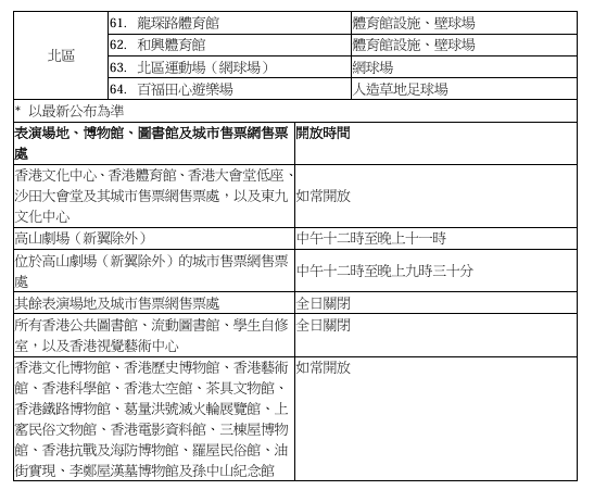 「SmartPLAY康體通」的網頁及流動應用程式(My SmartPLAY App)、城市售票網的網頁、流動購票應用程式(URBTIX),以及電話購票熱線3166 1288和票務查詢及客戶服務熱線3166 1100(上午10時至晚上8時)均維持正常服務。
