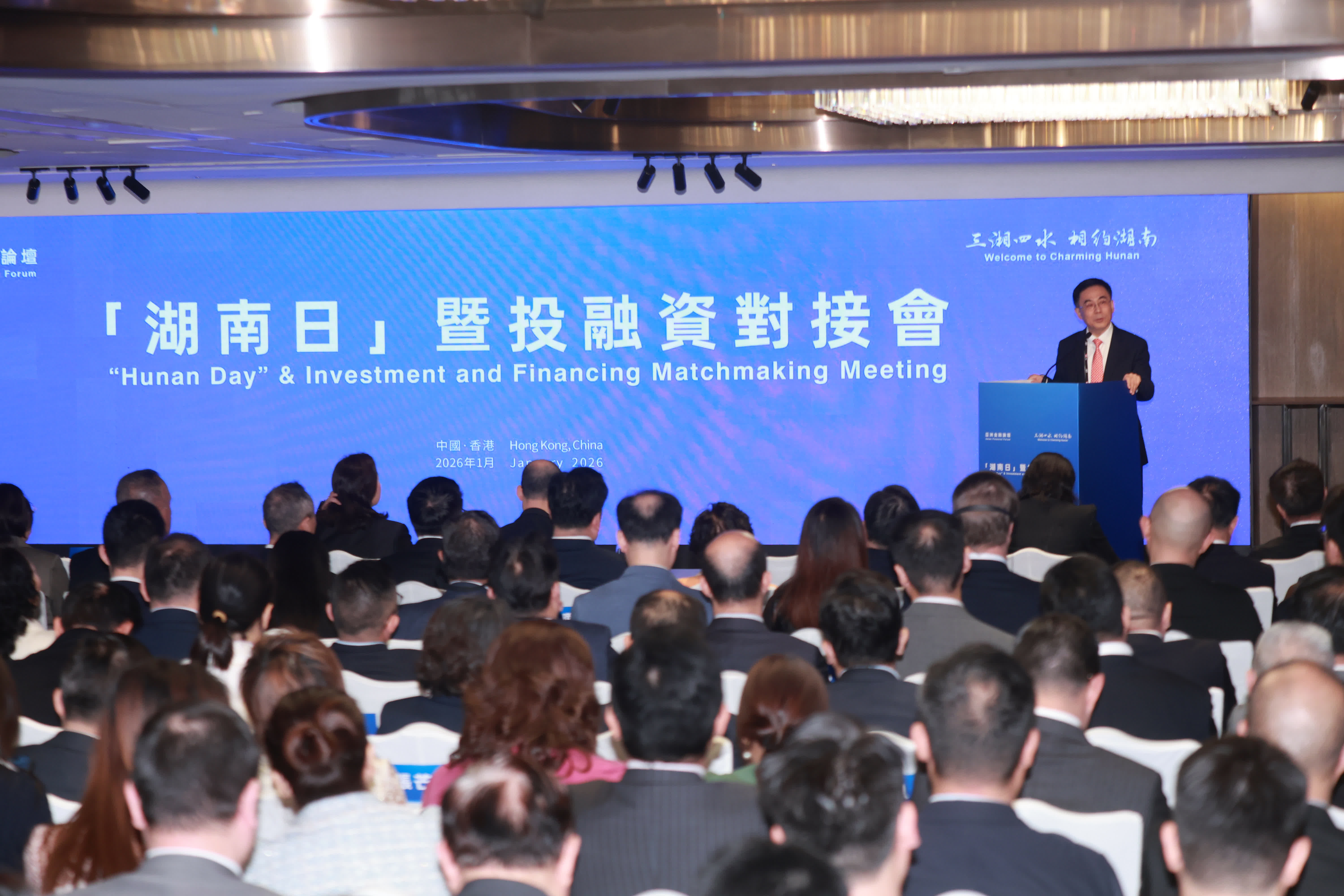 (香港文匯報記者 蔡競文)1月27日,亞洲金融論壇期間,湖南省在香港舉辦「湖南日」暨投融資對接會。該活動由湖南省政府港澳辦、省地方金融管理局、省商務廳和長沙市政府聯合主辦,長沙市商務局、市港澳辦、市地方金融管理局共同承辦。59家湖南企業和160余家香港政府部門、外國駐港總領事館、外國商會、在港外國金融機構和企業、在港內地企業、香港湖南政協委員等代表參與對接會。