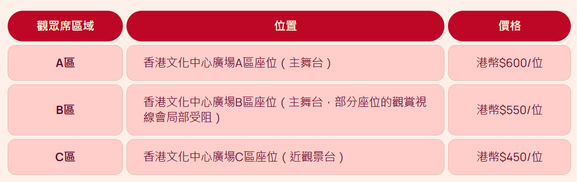 觀眾座席門票2月7日開售