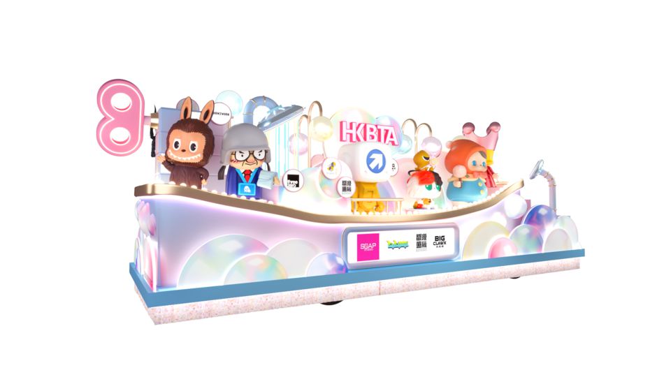 由香港品牌玩具協會主辦,文創產業發展處(文創處)贊助的「香港潮流玩具花車巡遊」,12個人氣IP公仔沉浸於大型浴缸內,當中有3隻吉祥物公仔陪伴巡遊,吹出創意泡泡。尖沙咀夜幕下化身童趣世界,30位舞者身着玩具風主題服裝,隨樂起舞,精彩舞步引領觀眾重溫童年,共迎新春。