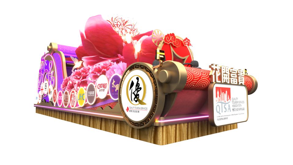 協會花車設計靈感源自中國農曆新年揮春納福、牡丹呈瑞的傳統風俗。主題寄寓新年萬象更新、富貴吉祥的美好願景,彰顯香港零售、餐飲及旅遊相關行業蒸蒸日上的蓬勃氣象。協會聯同多個「優質旅遊服務」計劃認可商戶合組花車,寄寓各個優質商戶攜手並進,熱情接待訪港旅客,弘揚香港「好客之都」的形象。