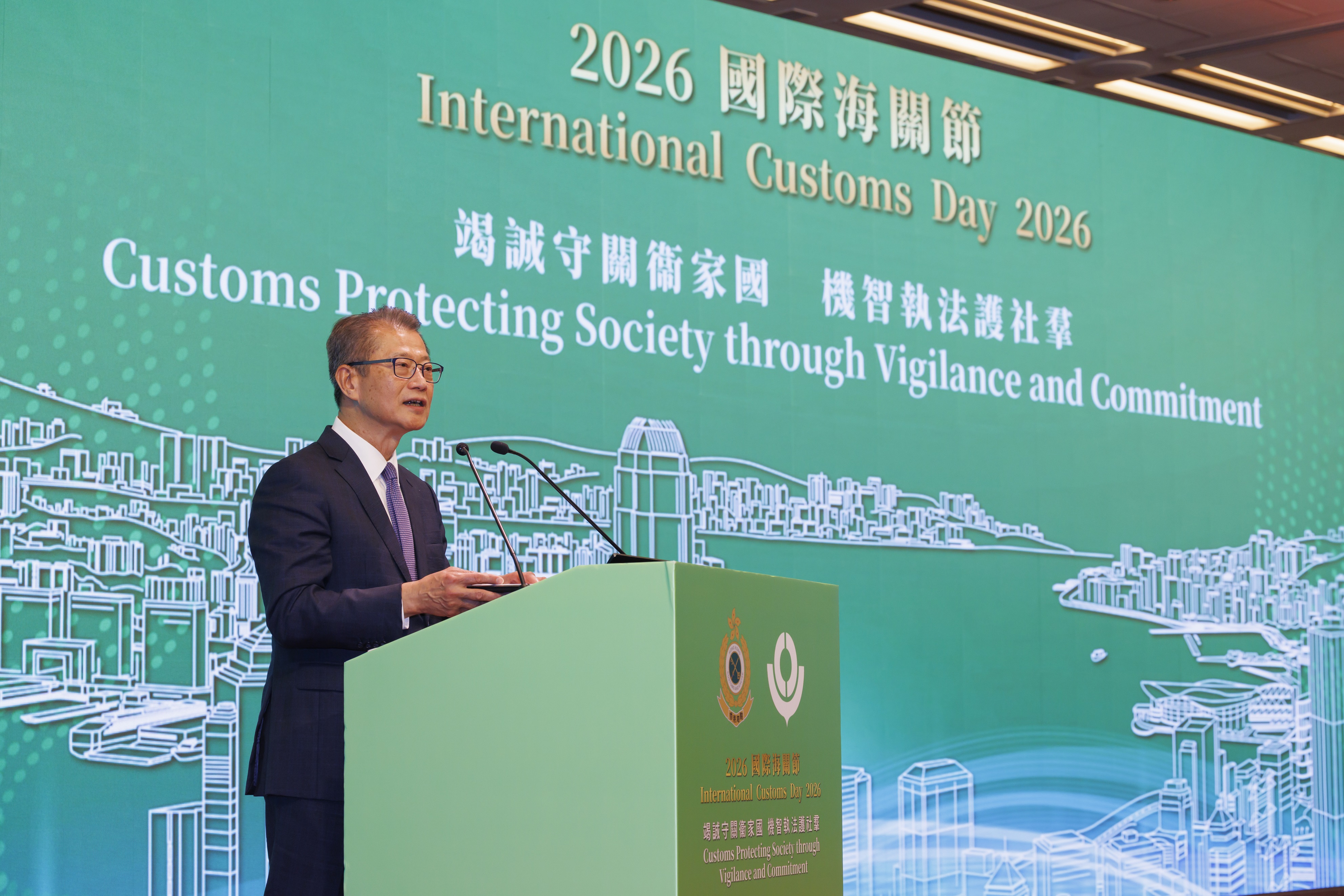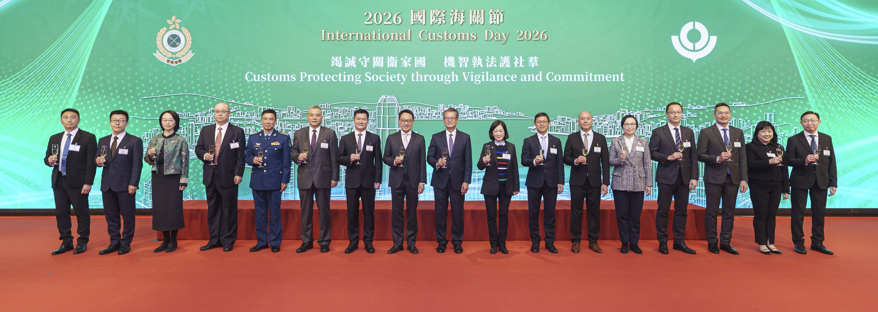 大公文匯全媒體報道,香港海關今日(27日)在香港會議展覽中心舉行2026年「國際海關節」酒會,並由財政司司長陳茂波及海關關長陳子達主禮。今年,世界海關組織將「國際海關節」的主題定為「竭誠守關衞家國,機智執法護社群」,旨在彰顯海關秉持使命、致力打擊罪案,保障國家安全與社會繁榮。活動吸引超過300名嘉賓出席。