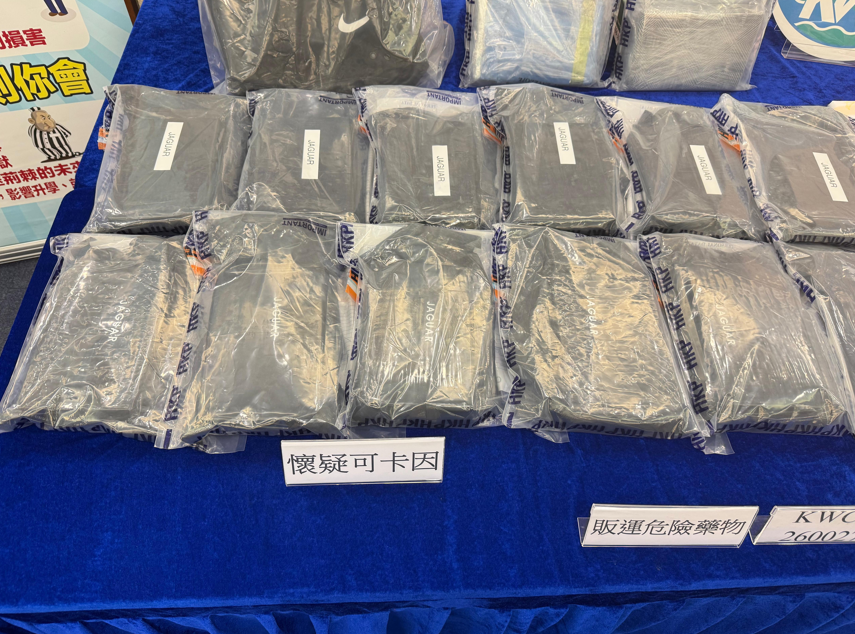 (大公文匯全媒體 記者 王俊傑)警方於昨日(27日)在葵涌區展開反毒品行動,並以「販運危險藥物」罪拘捕1男1女(年齡皆為32歲),並檢獲約16公斤的疑似可卡因磚和約50克的疑似大麻毒品,市值超過1200萬元。警方今日(28日)就上述案件作案情簡報。