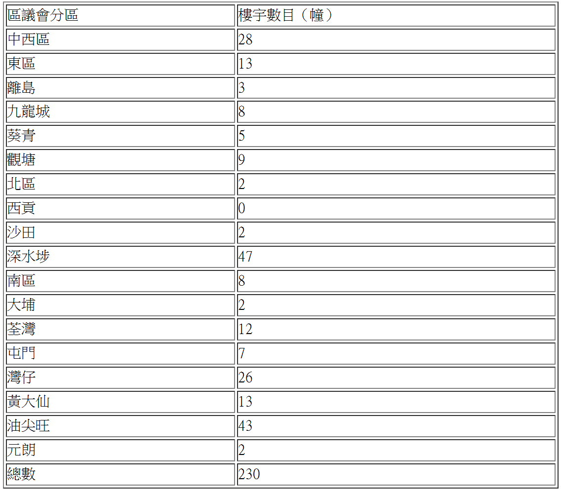 甯漢豪表示,政府於去年12月3日要求所有正進行大型維修工程的樓宇,如果外牆設有棚網,須將棚網下架並停止外牆工程。屋宇署發出下架和相關的停工令後,共230幢私人樓宇的外牆棚網已移除。根據屋宇署收到的工程展開通知書紀錄,上述230幢樓宇相信只有6幢樓宇的棚架搭建超逾兩年,分布於中西區、東區、深水埗、屯門及灣仔區。