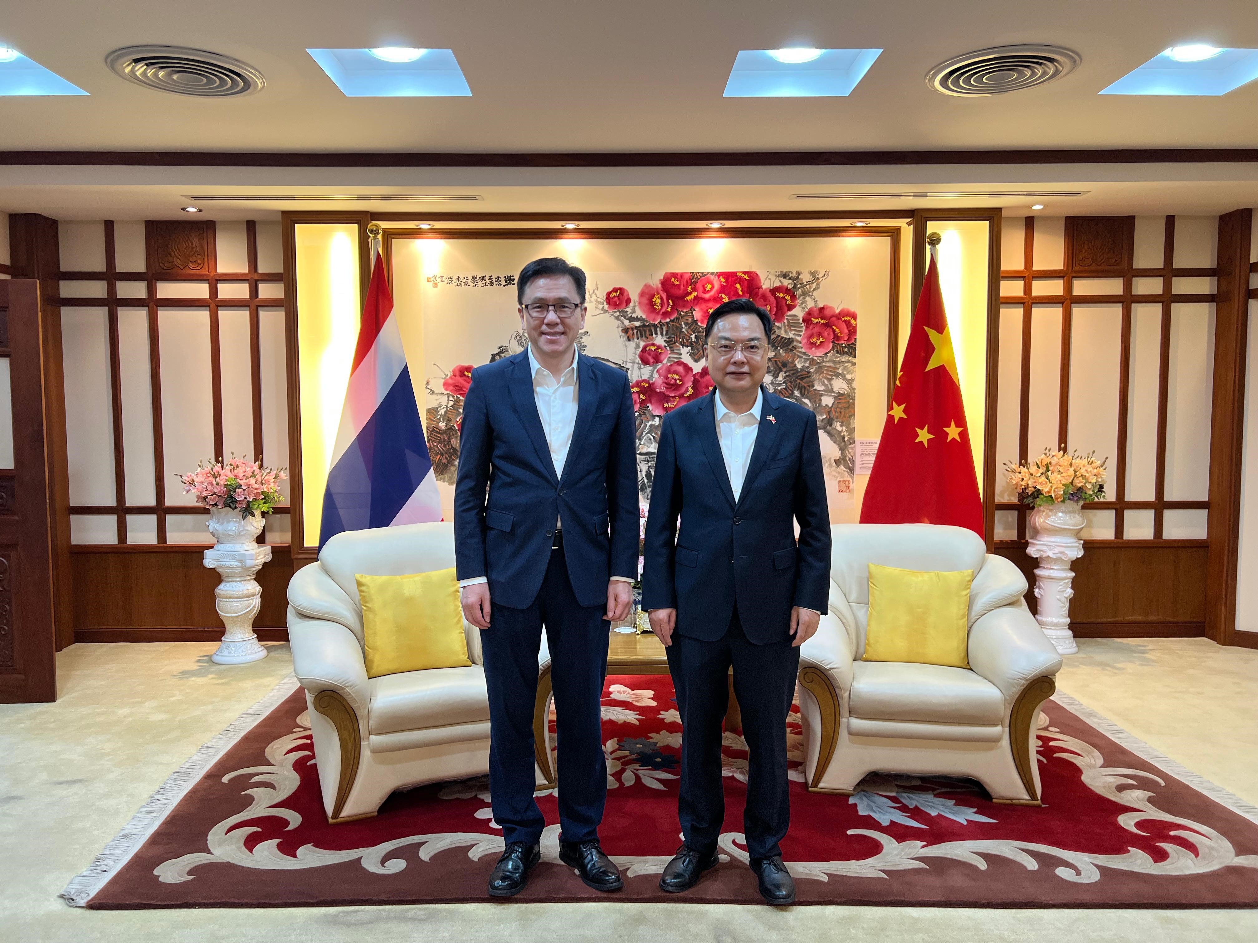 他亦拜會中國駐泰國大使張建衛,介紹香港特別行政區政府在推動創科、新興產業及數字經濟等的部署,並就進一步加強香港與泰國在創科領域的合作交換意見。