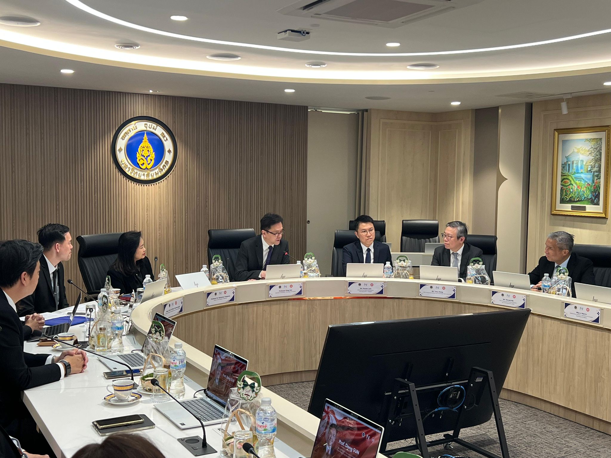 孫東教授上午到訪隸屬於泰國數位經濟與社會部的泰國數位經濟促進局,了解該局在推動數字經濟和創新發展的策略,涵蓋產業及中小企數字轉型、數字平台建設、對數字相關產業發展的支持,以及泰國數位谷項目。雙方還就開展該局與香港科學園及河套香港園區的協作進行交流。