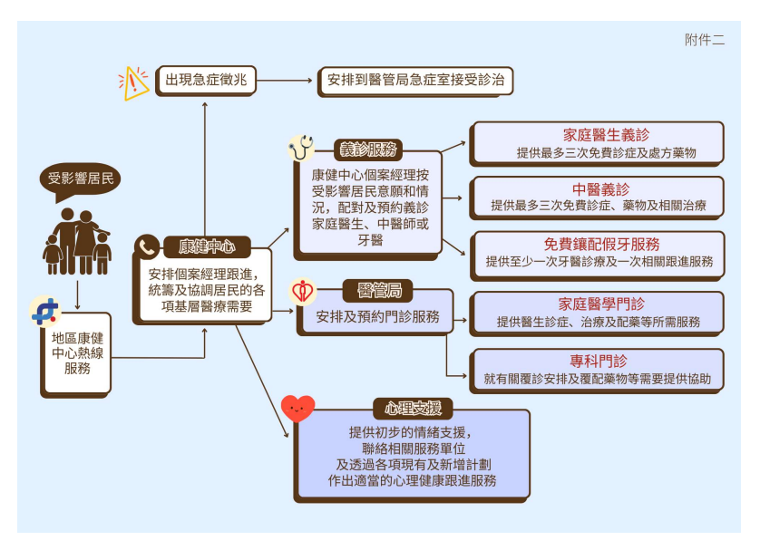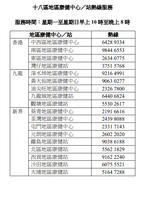 截至1月27日,18區康健中心熱線累計接獲369人次的來電。另外,有超過300名私營家庭醫生參加義診計劃,涵蓋超過450個服務點,當中包括8間私家醫院,累計已處理97宗轉介。中醫義診服務則已有超過360名中醫師參加,涵蓋超過620個服務點,累計已處理64宗轉介。牙醫免費鑲配假牙服務有超過110名私營牙醫參加,涵蓋超過150個服務點,累計已處理31宗轉介。