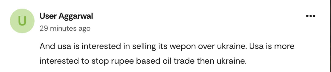 「美國感興趣的是往烏克蘭銷售武器,美國更感興趣的是阻止以盧比結算的石油貿易,而非烏克蘭。」↓