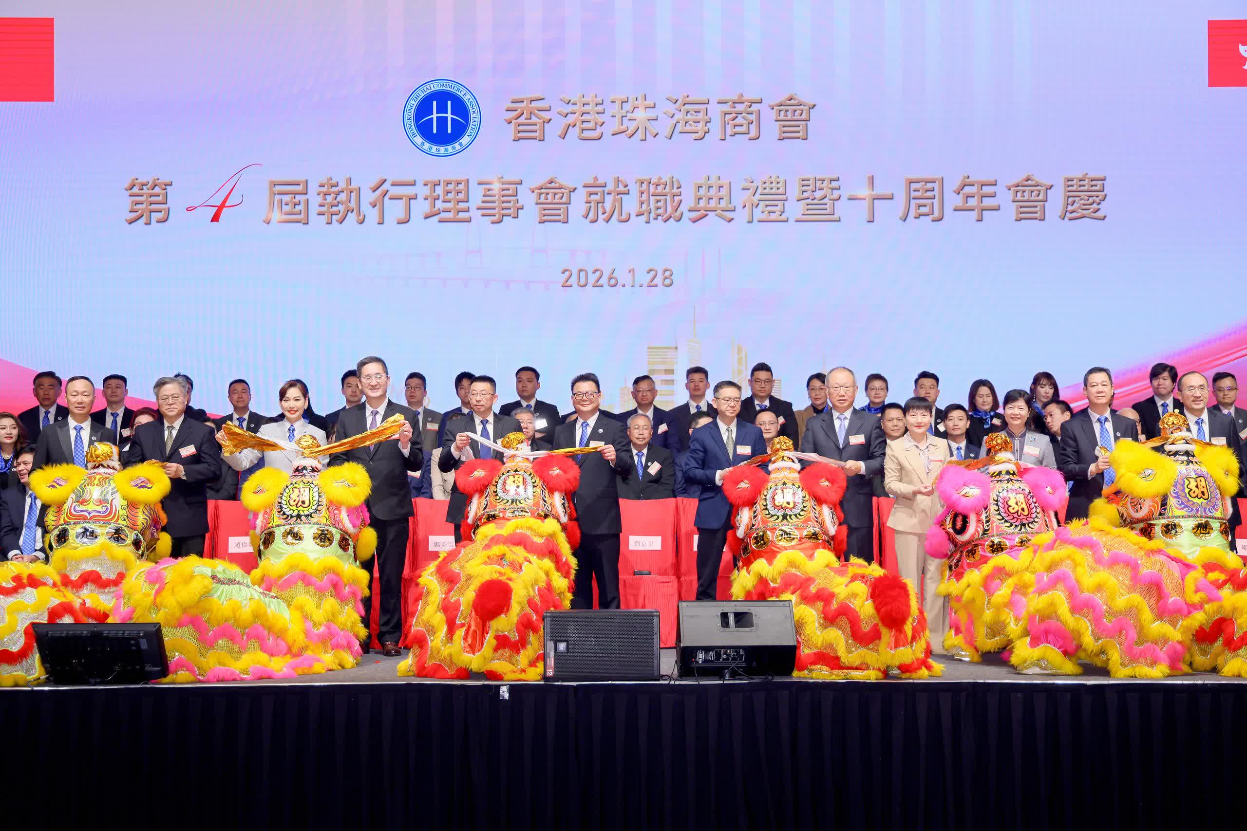 1月28日,香港珠海商會第四屆執行理事會就職典禮暨十周年會慶在香港合和酒店舉行,逾600位嘉賓和會員參加。財政司司長陳茂波、行政會議召集人葉劉淑儀等發來賀詞,中央政府駐港聯絡辦社團聯絡部副部長胡啟明,珠海市委常委、宣傳部部長徐劍,商務及經濟發展局副局長陳百里,珠海市政協副主席張松,港區全國人大代表、香港珠海社團總會會長鄺美雲等出席典禮,為商會新一屆核心領導成員頒發委任狀。