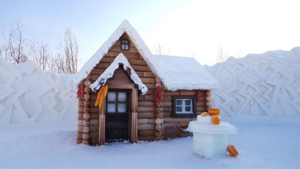 彩色冰屋景觀位於哈爾濱冰雪大世界南入口附近,植物彩色冰的應用讓整座冰屋的原木紋理非常逼真,其獨特的質感和形態讓不少遊客「誤」以為它是由真實的木材修建而成。白天,陽光灑在彩色冰屋上,反射出溫潤的質感;夜晚在燈光映襯下,給人一種林中深處童話世界的感覺,成為遊客超級喜愛的打卡地。
