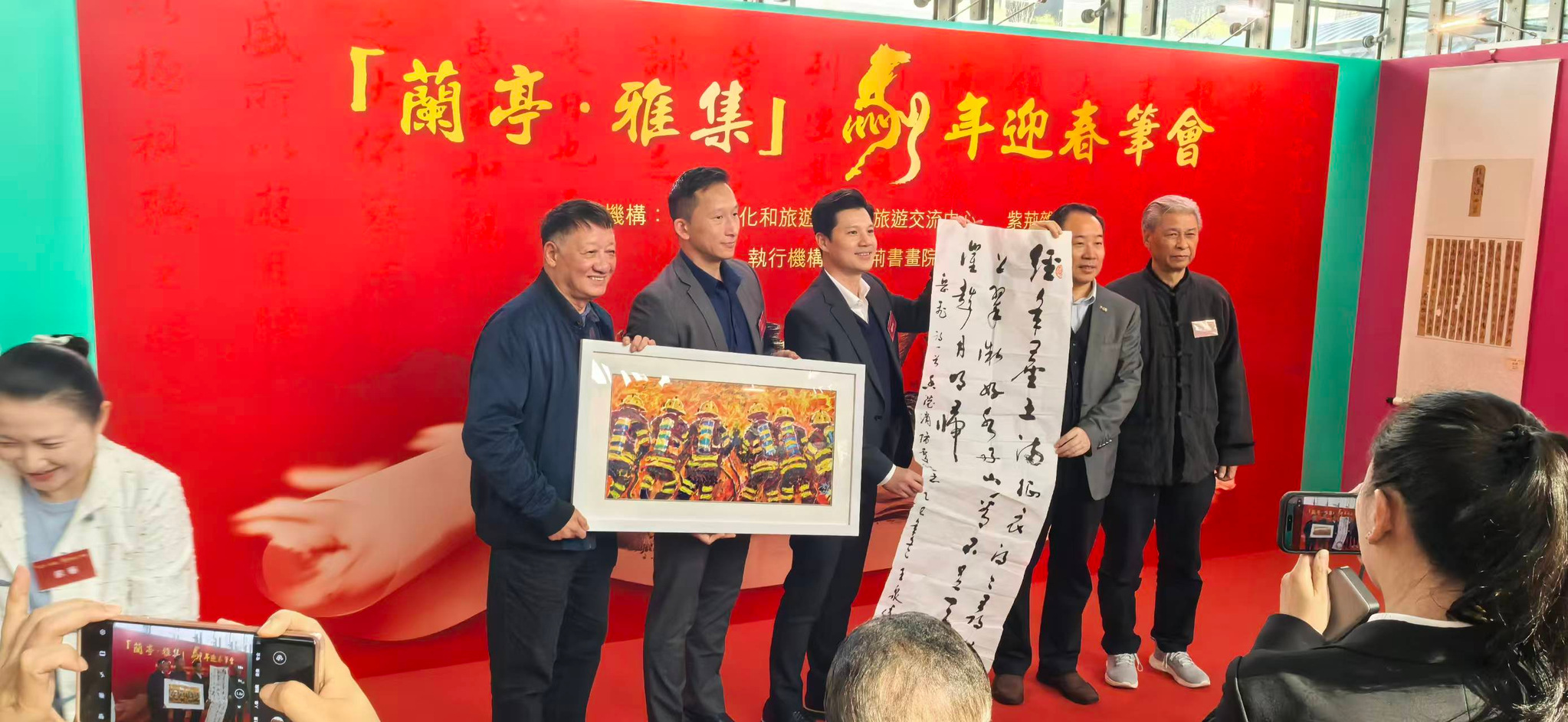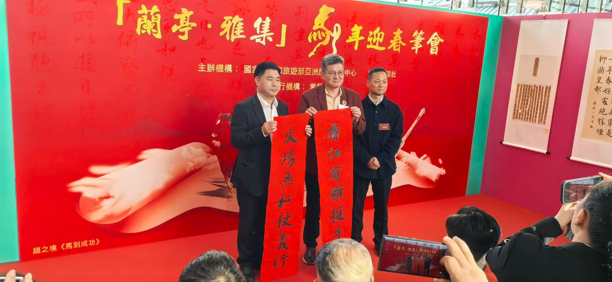 大公文匯網報道,1月28日下午,西九紫荊藝術展演空間雅意融融,四十餘位香港書畫藝術家齊聚一堂,共賀「蘭亭·雅集」迎春筆會。活動由文化旅遊部亞洲旅遊交流中心與紫荊雜誌社聯合舉辦,以筆墨迎接馬年的到來。