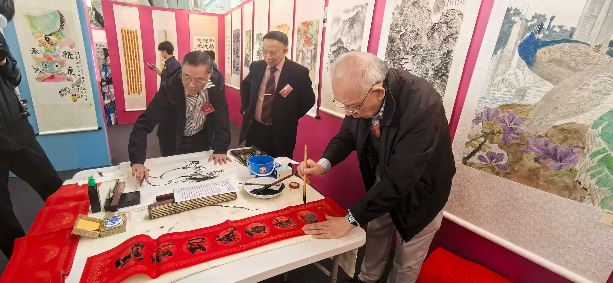 筆會緊扣「馬」年主題,取意「躍馬迎春,墨香潤港」。現場翰墨飄香,藝術家們即興揮毫,「平安馬到春無限,快樂花福滿庭」「駿馬奔馳開盛世,吉星照耀好前程」等一副副吉祥楹聯躍然紙上;飽滿的「福」字、奔騰的駿馬圖相繼呈現,春意盎然,氣氛熱烈。