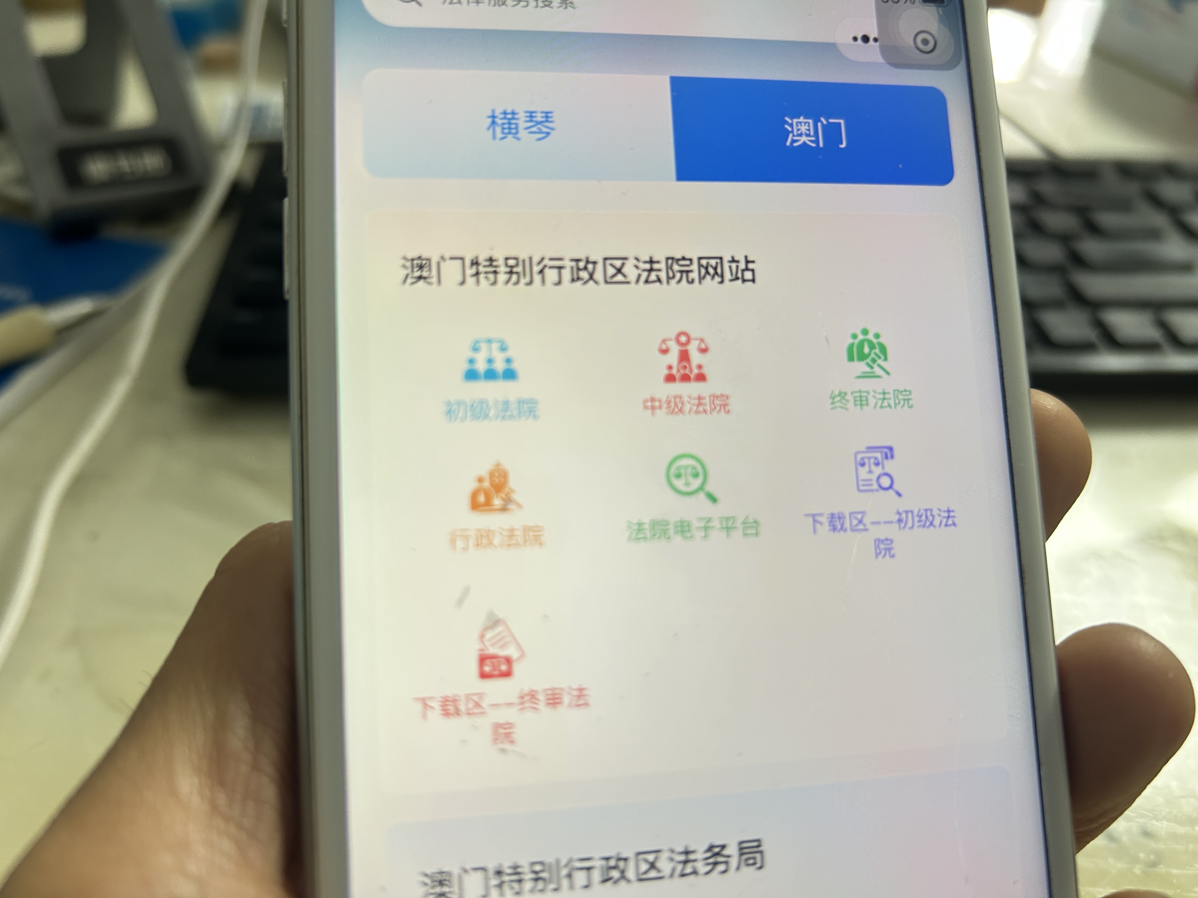 據介紹,隨着琴澳一體化建設深入推進,兩地人員往來日益密切,跨境商事活動日趨頻繁。為破解以往法律服務資源分散、跨境辦理程序複雜等難題,橫琴法院立足實際需求,整合兩地司法服務資源,打造了集查詢、辦理、諮詢於一體的「琴澳法律通」小程序。