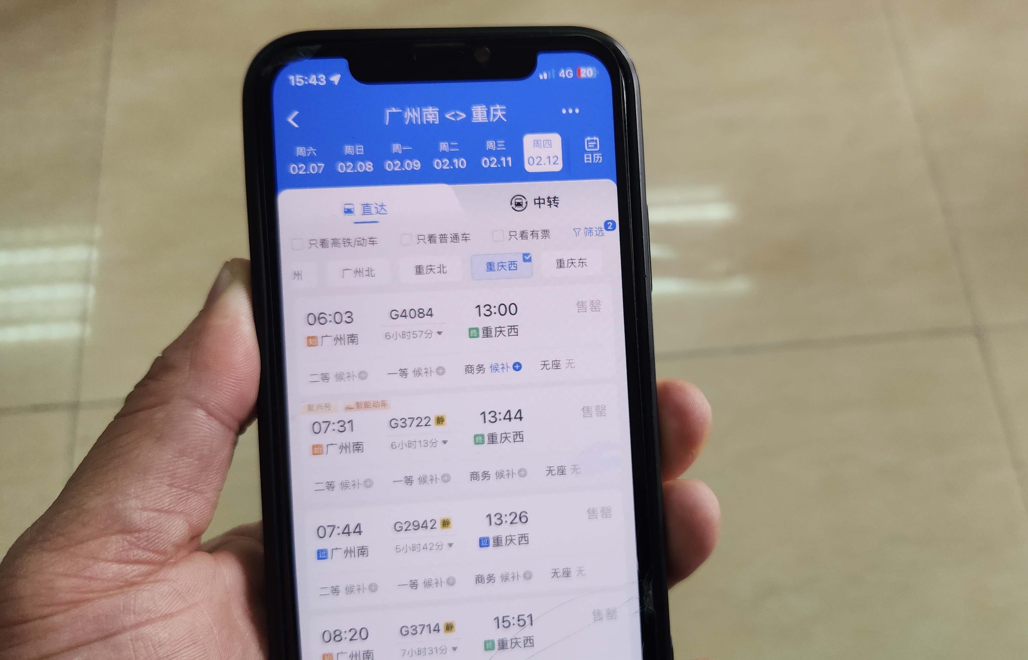 作為全國客流最密集的交通樞紐之一,廣州南站年旅客發送量和日均客流量穩居全國高鐵站前列。廣州南站預計,今年春運該站發送、到達旅客分別達1115萬、逾1067萬人次,同比均增長4%以上,到發總量佔廣州全市客流量的40%以上。鐵路部門提示,1月30日和2月1日將迎來新一輪購票高峰,分別開售2月13日(年廿六)和2月15日(年廿八、除夕前一天)的火車票。而廣州南站往武漢、長沙、貴陽、成都、昆明、桂林方向餘票緊張;2月7日至12日往重慶西方向的車票已全部售罄。