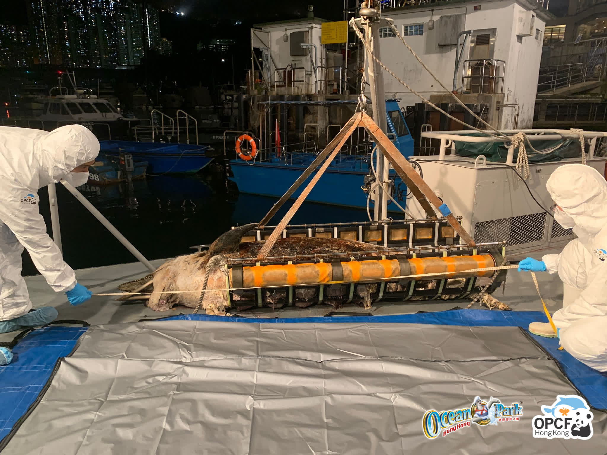 透過擱淺的海洋動物屍體,我們能了解牠們生前的健康狀況,是探究海洋生態的關鍵線索之一,因此需由專業人士妥善及有系統地處理,這也是對大自然和生命的尊重。因此,香港海洋公園及保育基金自2006年起與漁農自然護理署(漁護署)緊密合作,連同園内動物護理及獸醫團隊,成立了「海洋生物擱淺行動組」(行動組),以系統性地處理擱淺事件,包括仔細解剖屍體,進行現場調查,後續進行死因、疾病、寄生蟲感染等多方面分析,甚至營救活體擱淺的海洋生物。本月初有市民在屯門發現江豚屍體,行動組接報後立即出動,將其送往海洋公園進行化驗。