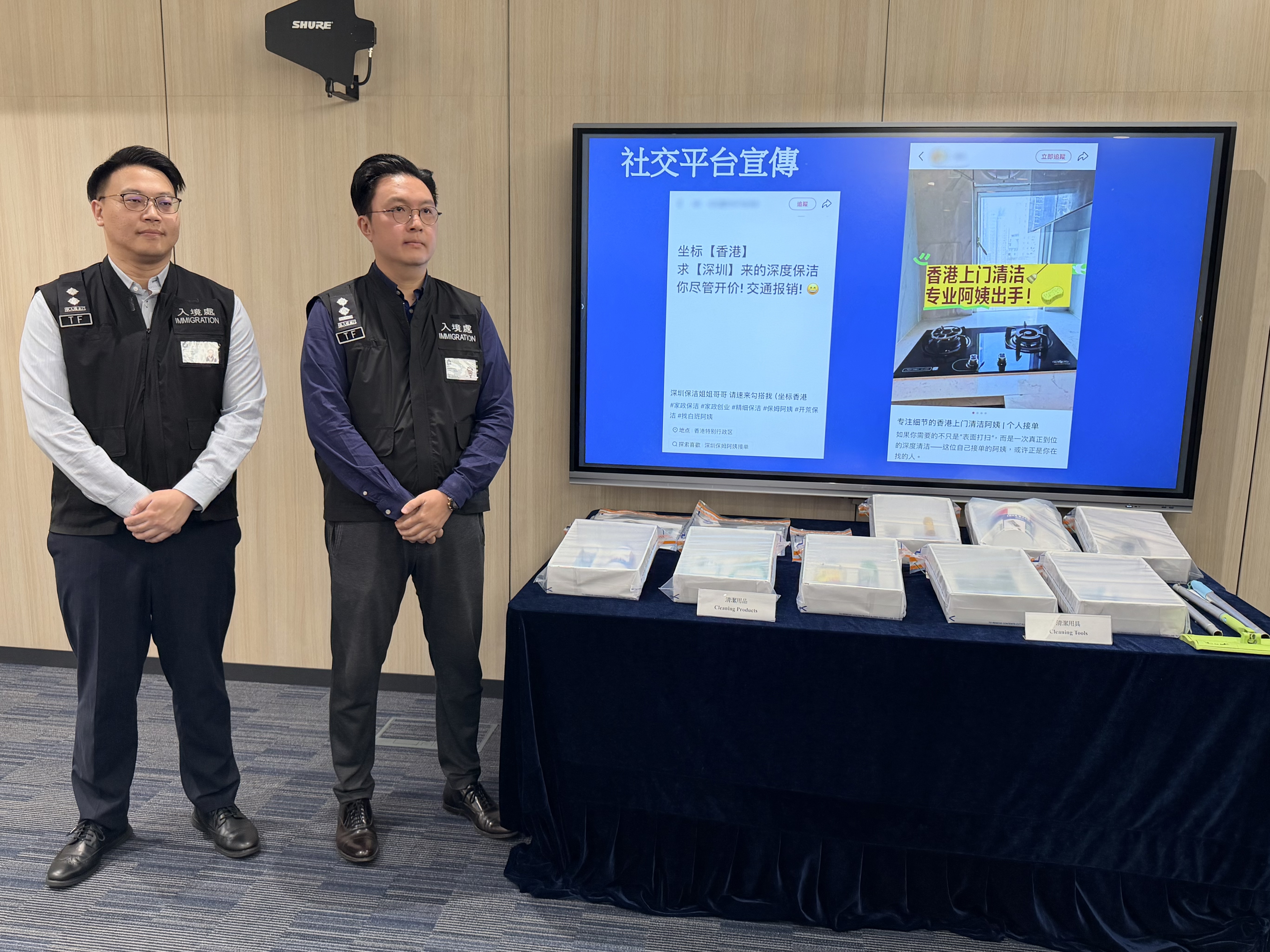 入境處特遣隊副指揮官陳仁傑表示,入境處一直密切留意非法勞工的新趨勢,透過不同方式進行情報搜集,包括以網上巡邏方式,主動偵測和打擊在社交平台或利用通訊軟件進行宣傳和從事非法勞工的活動。調查人員在網上巡邏期間,留意到可疑的內地家務助理和裝修公司在「小紅書」上作出宣傳,聲稱可以來港提供家居清潔和裝修服務。經過調查和分析,入境處展開專項反非法勞工行動,以「放蛇」形式,假扮顧客查詢及預約相關服務,及後在他們來港提供服務時作出拘捕。